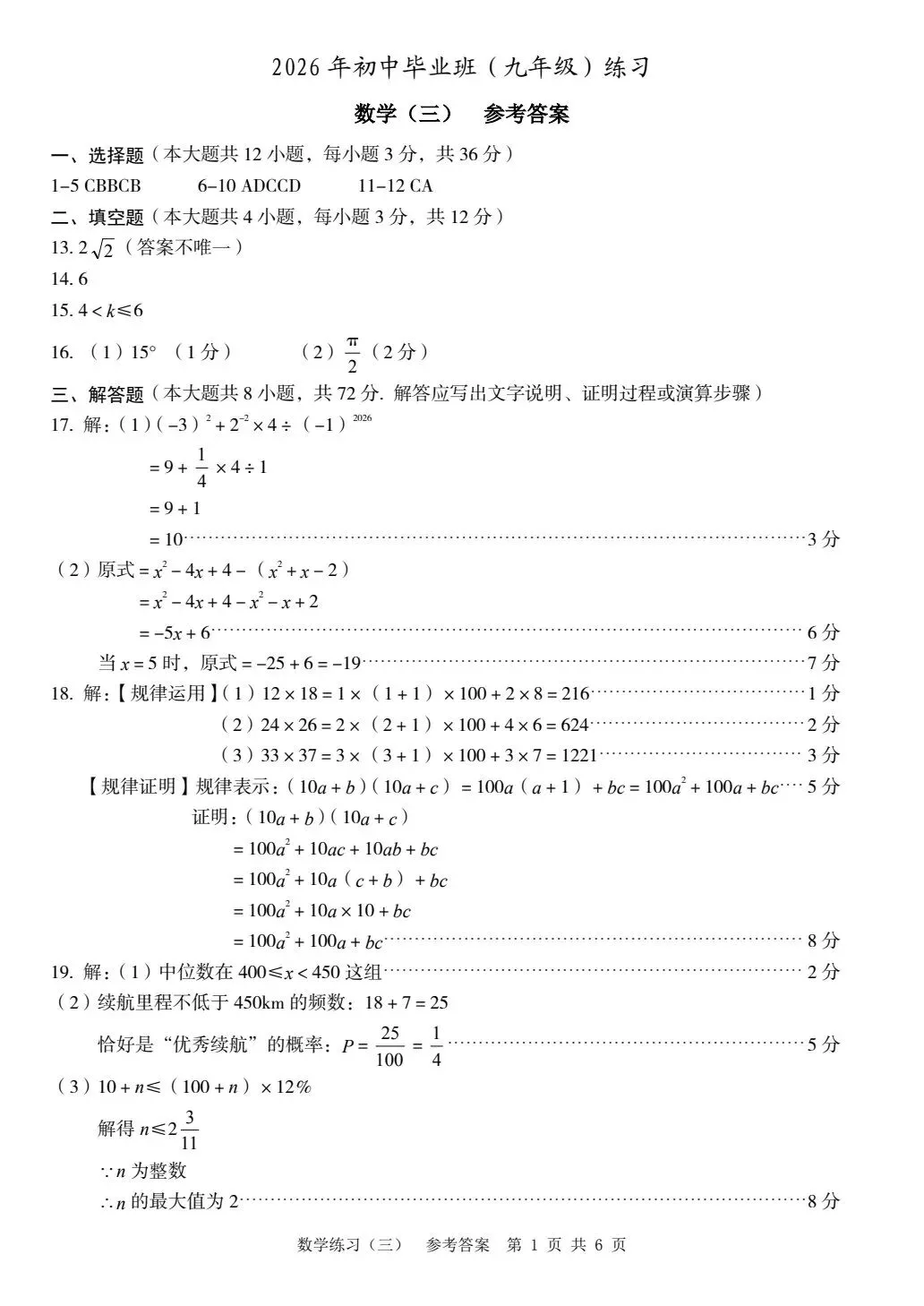 >2026石家庄市新华区初中数学一模试卷