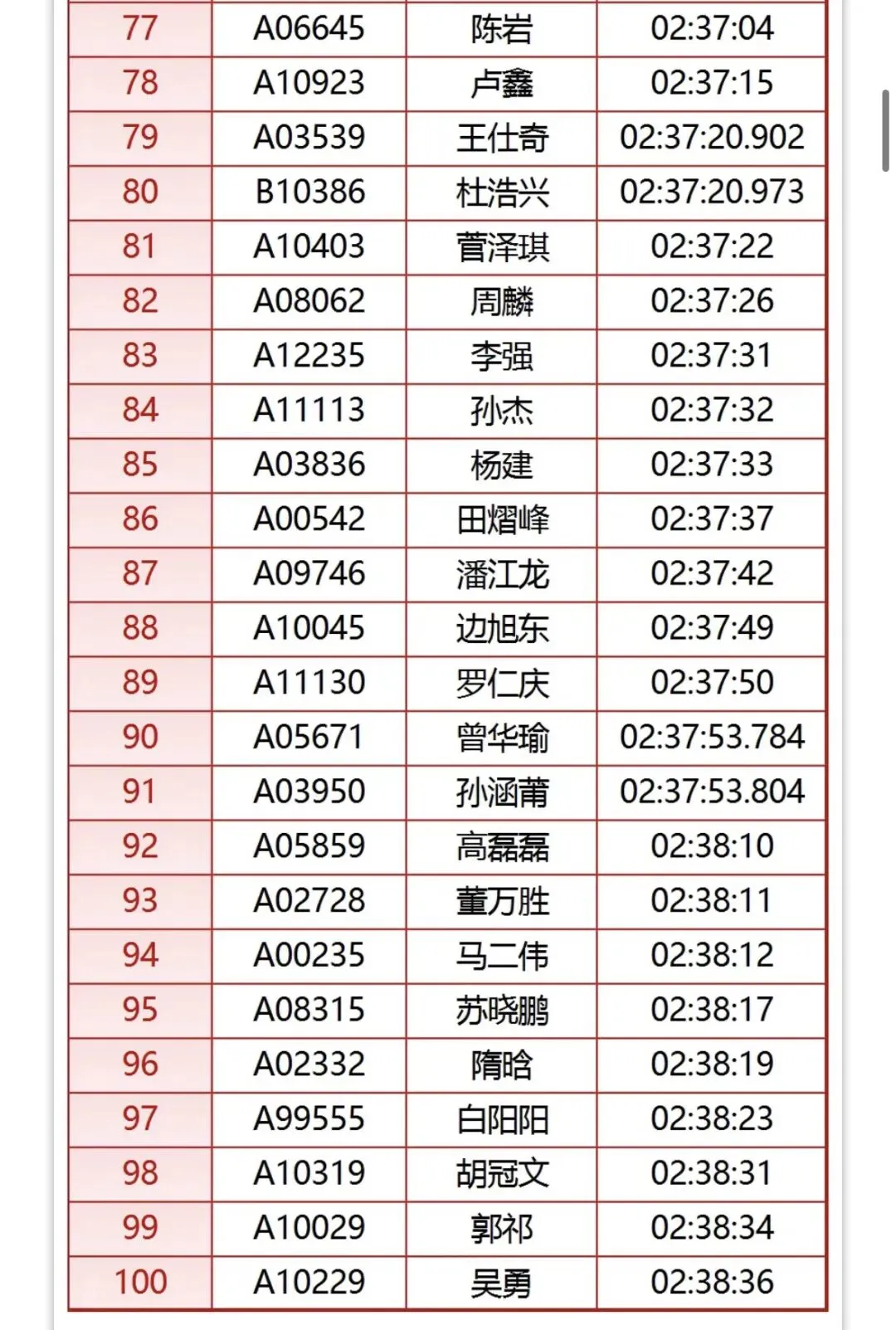 昨天石马成绩公示,侥幸位列男子第99名、石家庄籍第二。