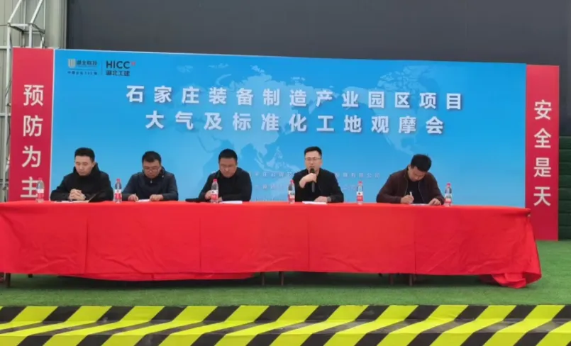 4月3日,河北省石家庄市的园区在建工地大气及标准化工地观摩会在工建建设承建的石家庄装备制造产业园云翼芯港建设项目召开。现场学习先进企业经验,动员全园区在建项目施工企业进一步落实工地扬尘治理工作,促进空气质量提升,来自园区各在建项目的60余名代表参加。本次观摩会旨在树立湖北工建云翼芯港建设项目大气及标准化工地标杆,向全区推广宣传,号召在建施工现场向标杆看齐。