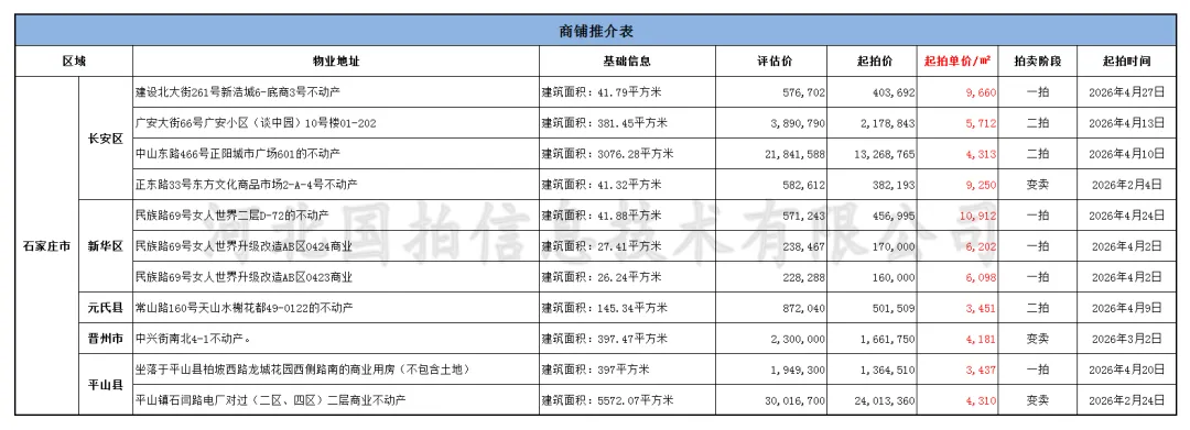 京东司法拍卖商业房源汇总