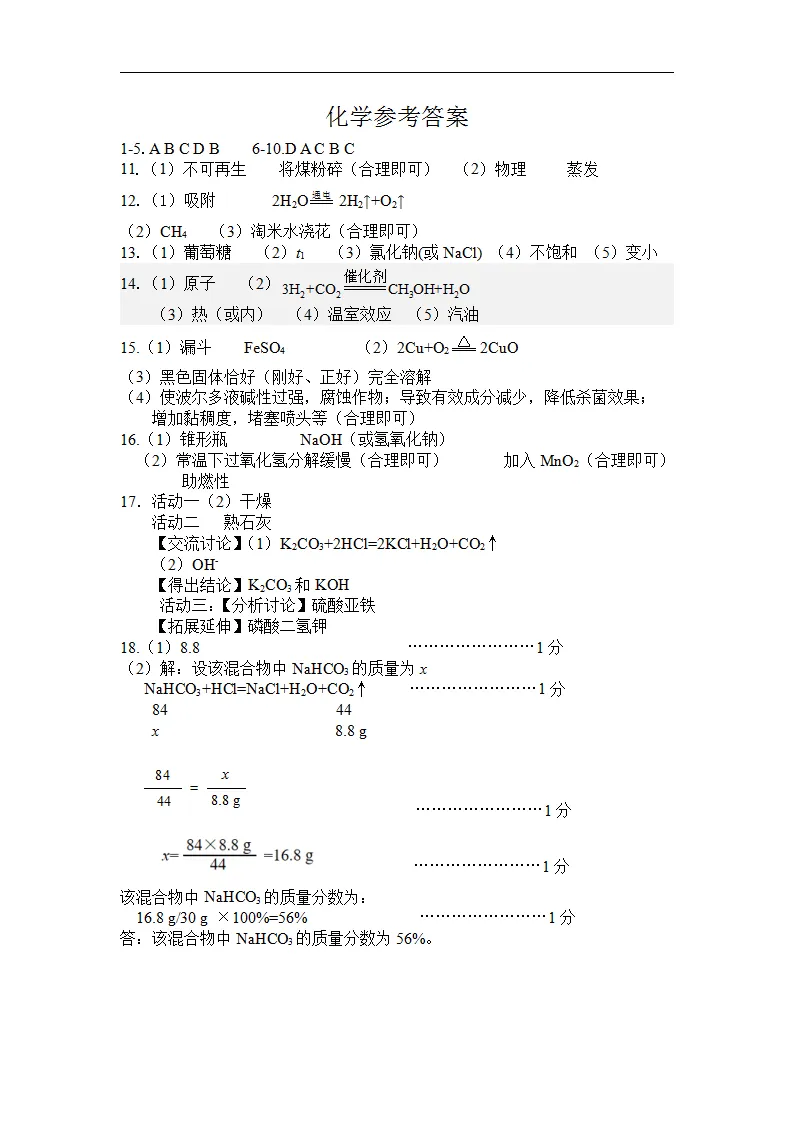 中考一模|2026年4月石家庄新华区中考一模化学试卷(后附打印版下载链接)