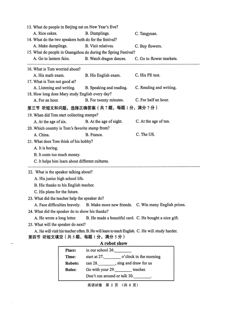 中考英语听力|2026年4月石家庄新华区九年级中考英语模拟听力在线测试(含答案及MP3下载链接)