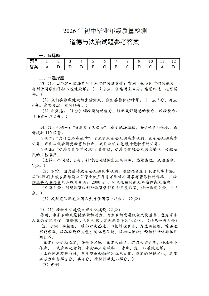 【2026 中考模拟】4月石家庄新华区质检全科(含答案)