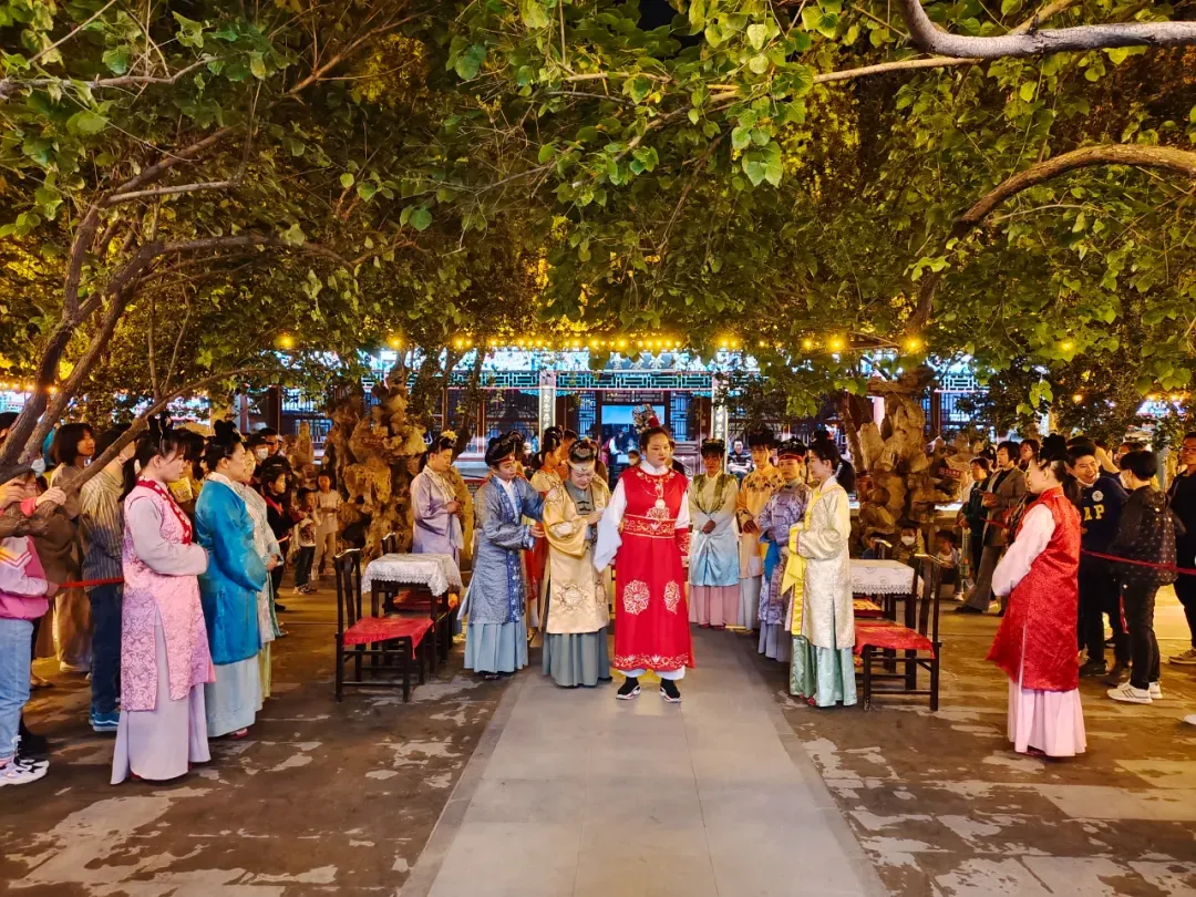 内容:(1)得闲箫语润红楼——洞箫雅集;(2)“石韵华章·文润民心”一一石家庄文学周启动仪式暨正定荣国府第十一届海棠诗会;(3)日场:情景舞蹈表演、书画创作、古装游园;(4)夜游:演艺内容全新升级,以“刘姥姥嬉游荣国府”为主线,共设8大主题演艺,每日3场沉浸式演出轮番呈现,带游客感受“姥姥入府”“凤姐逗趣”“簪花游园”“湘云酣卧”等故事场景。