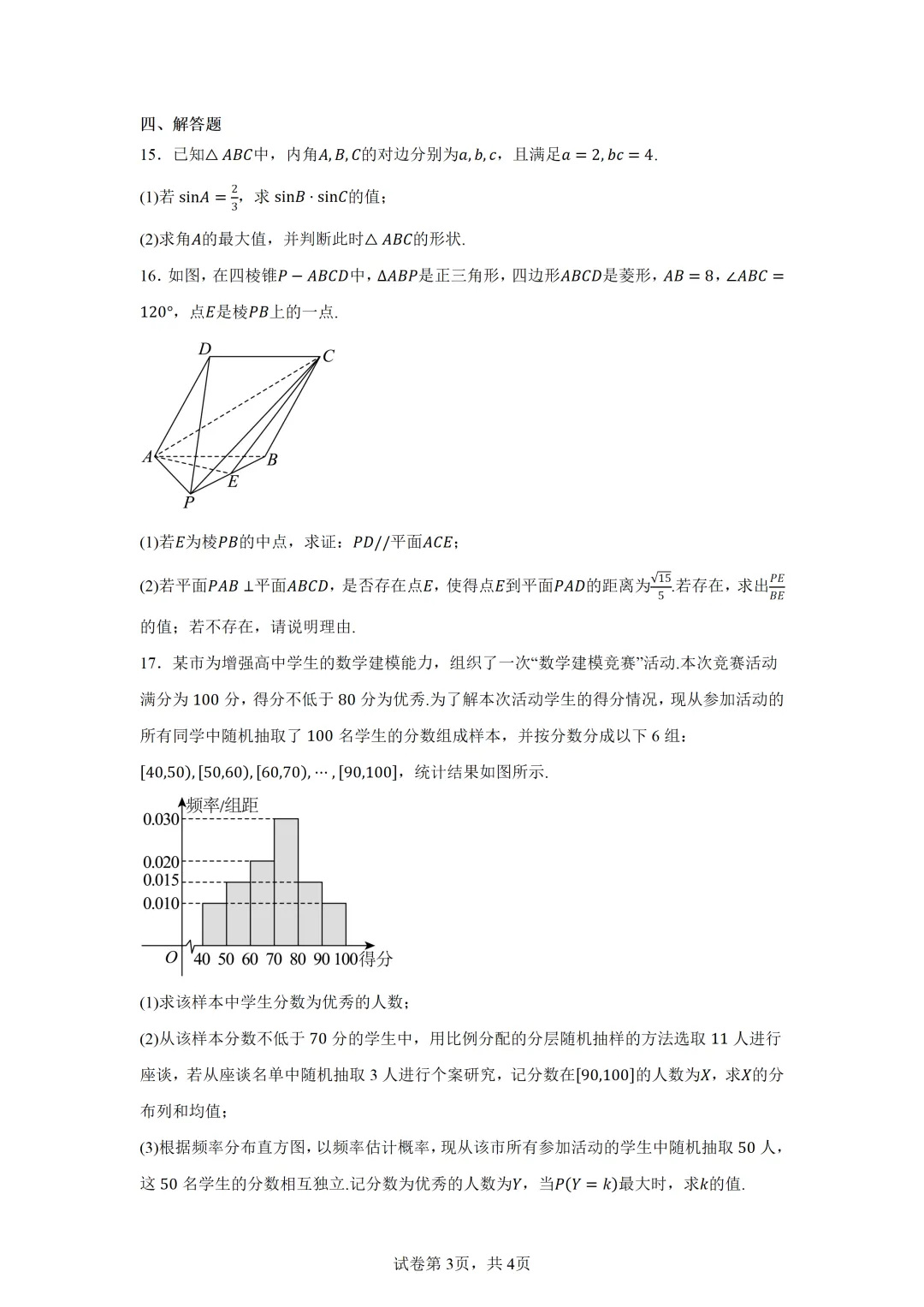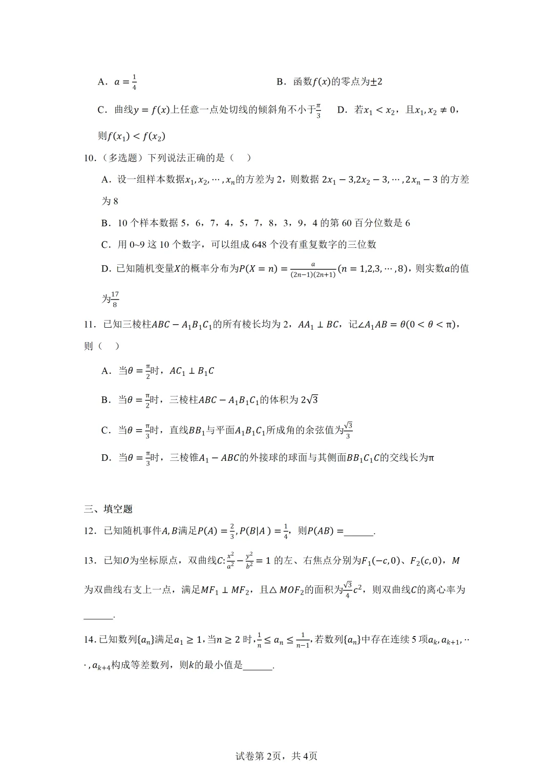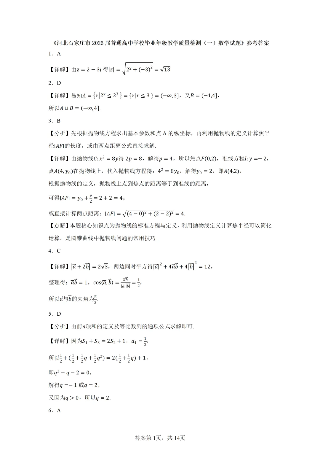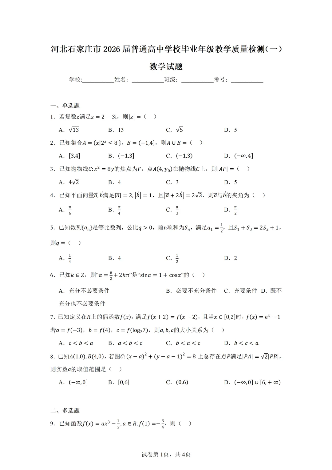 河北石家庄市2026届普通高中学校毕业年级教学质量检测(一)数学试题 (1)