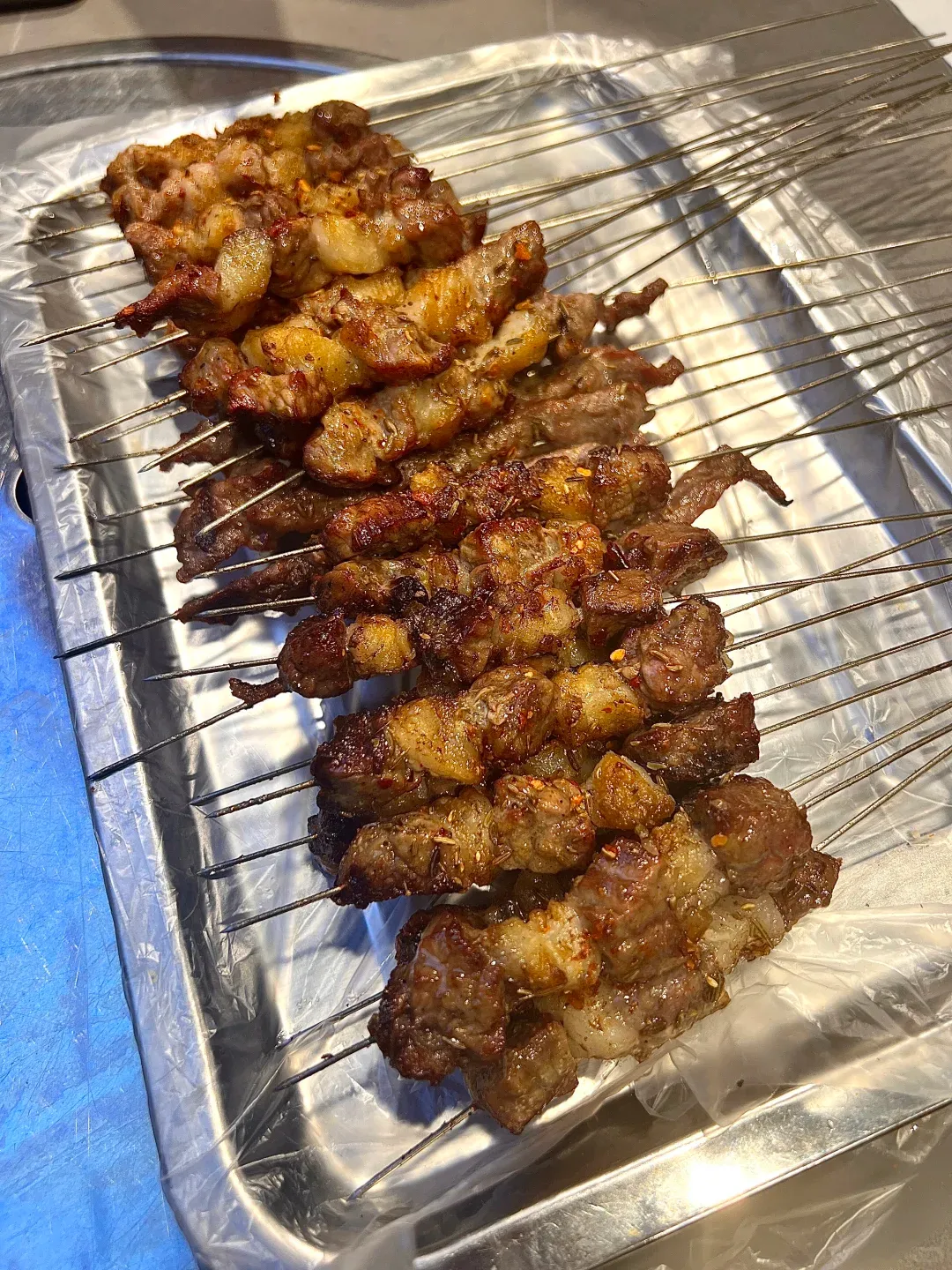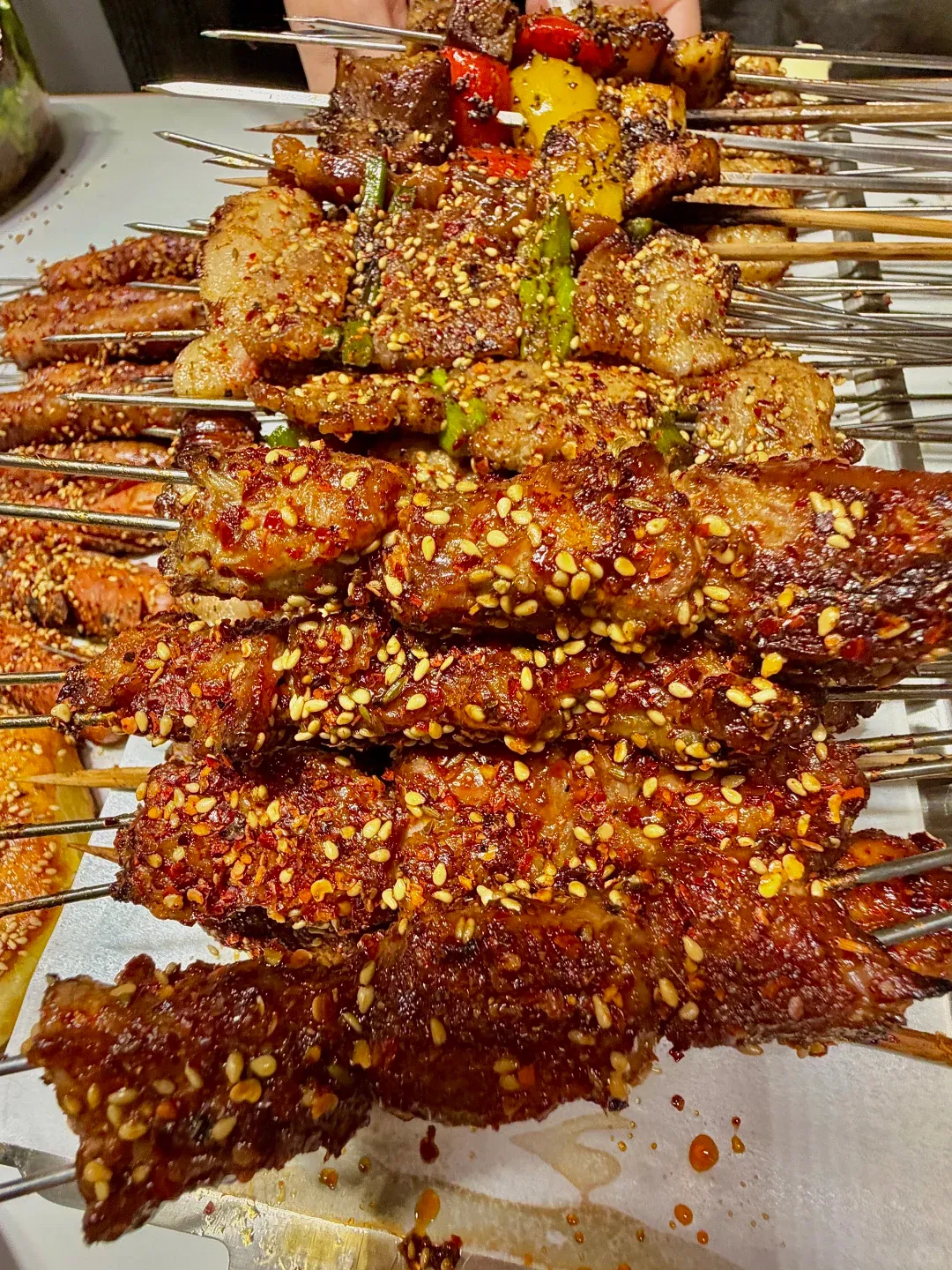 - 羊肉串,外焦里嫩,肉汁锁得满满当当,手撕着吃才够劲!