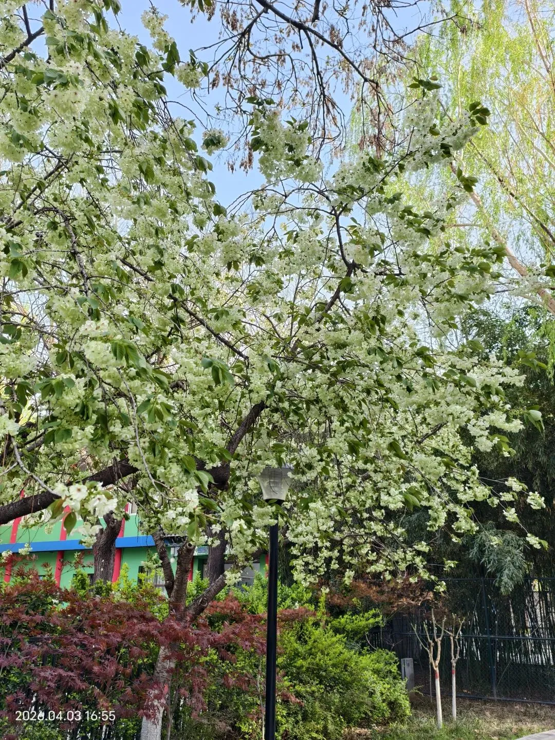 石家庄平安公园的绿色樱花开了,目前是黄绿色。