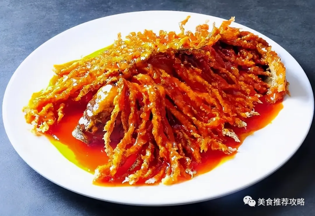 金毛狮子鱼是一道石家庄的传统名菜,同样属于冀菜系列,曾入选河北十大经典名菜。金毛狮子鱼用的是鲤鱼,鲤鱼是先炸成金黄,形状就像是狮子一样,由此而得名。鲤鱼本就营养丰富,再加上口味酸甜,十分受人喜爱。