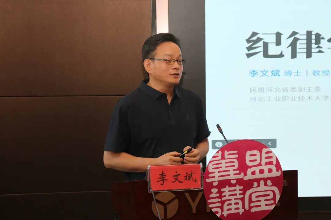 为推进纪律学习教育走深走实,确保取得扎实成效,8月12日,民盟河北省委联合民盟石家庄市委举办2024年第三期“冀盟讲堂”活动。民盟河北省委副主委、河北工业职业技术大学副校长李文斌为盟员作了纪律学习教育专题讲座,民盟河北省委副主委、石家庄市委主委蒲月英主持讲座。