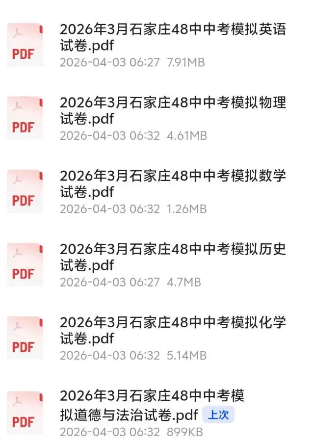 石家庄48中2025-2026学年九年级3月阶段学情数学物理化学自测试卷