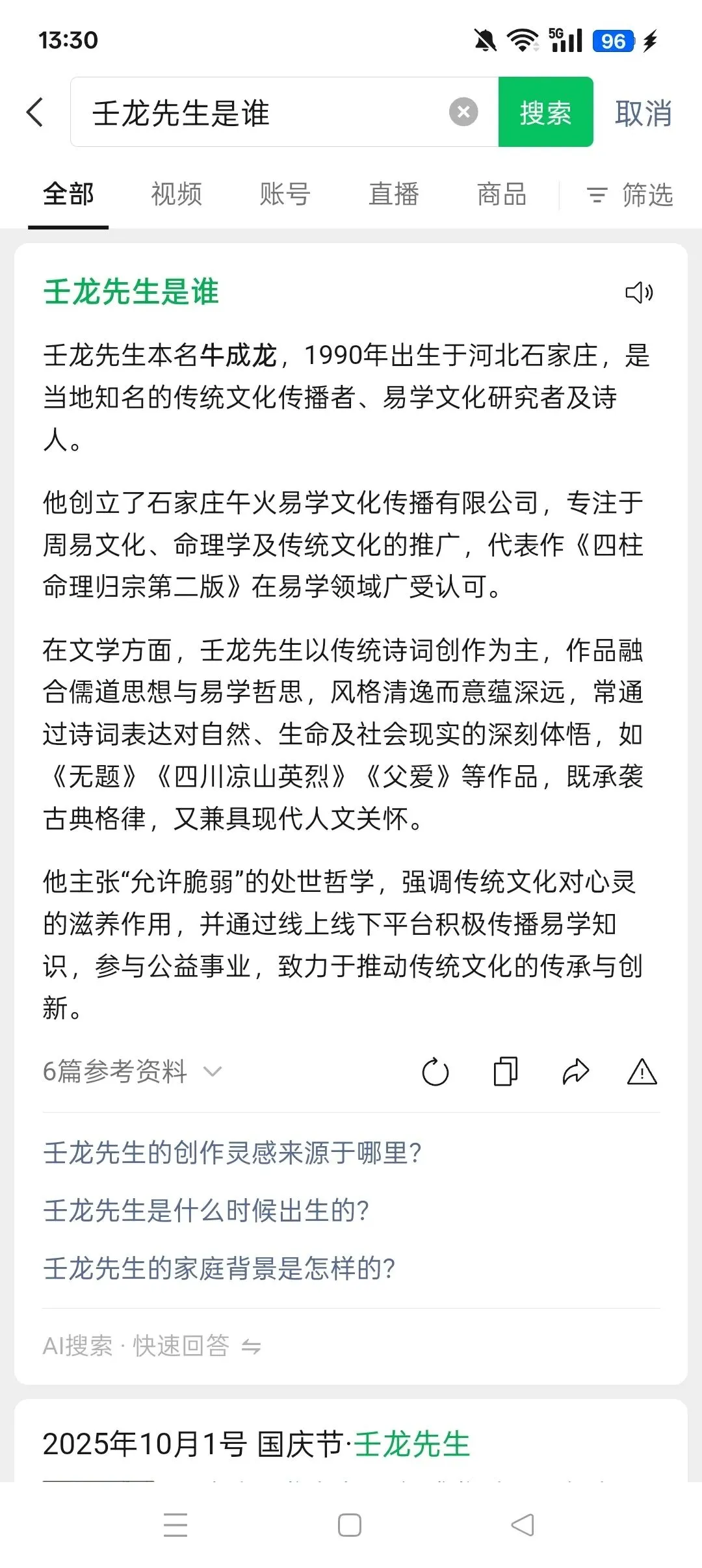 壬龙先生,自幼对传统文化有着浓厚的兴趣,并受先辈思想熏陶,对古典文学有极大热忱!后来机缘巧合,又对易学命理,四柱八字,测字,梅花易数,赋予十年心血,潜心研究,终于在此领域取得比较不错的成果!得到了广大易友的认可!