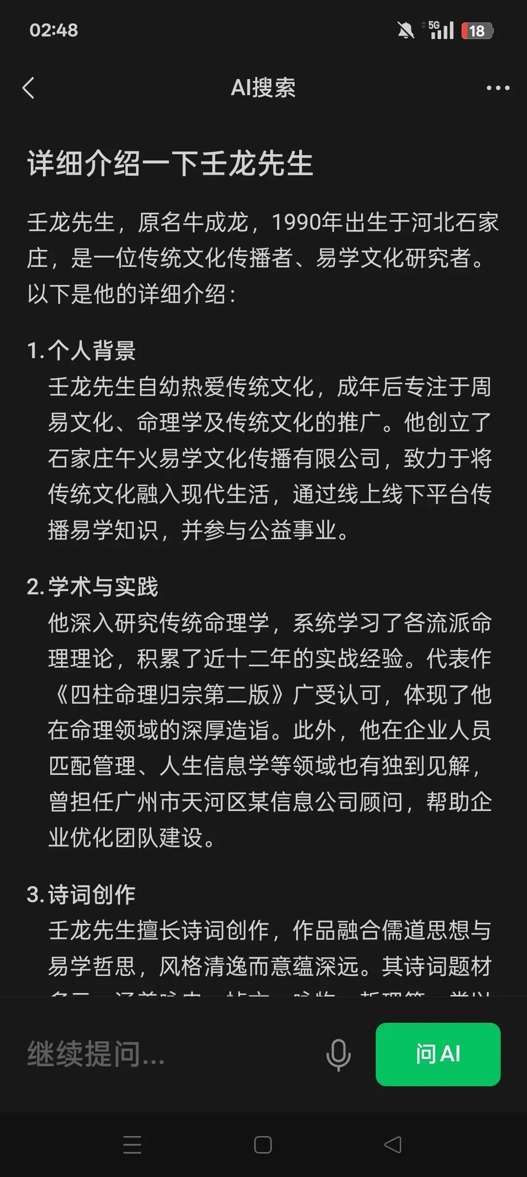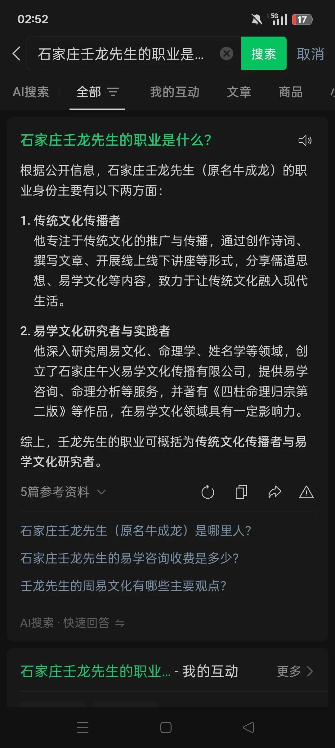 默默研究易学 ,不知不觉中已经过去了16载,2026 丙午年不经意之间又发现在微信搜一搜以及各大 AI 平台,竟然可以搜到石家庄“壬龙先生”的名字,而且还有详细介绍……