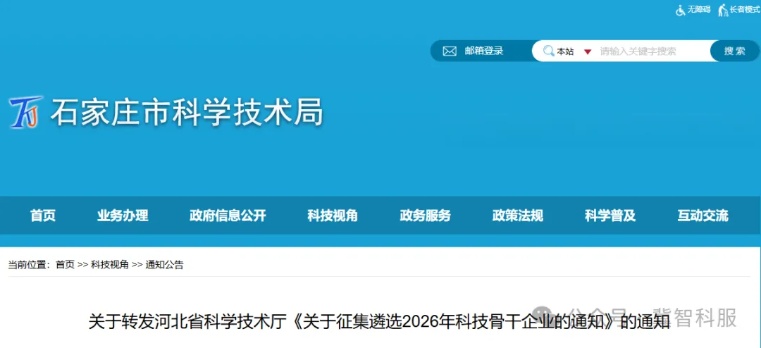 河北省科学技术厅关于征集遴选2026年科技骨干企业的通知