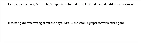 Realizing she was wrong about the boys, Mrs. Henderson’s prepared words were gone. For a moment, embarrassment rooted her to the spot, with her face burning hot. A wave of guilt washed over her as she looked at the shy boys she had blamed. “I...I thought it was the.........” her voice much softer than before. Mrs. Henderson then turned to the twins and invited them to see her garden someday. The boys’ eyes lit up at once. As she walked back home with the papers, it dawned on her that suspicion, like frost, could chill the heart, but kindness had the power to melt it away.
