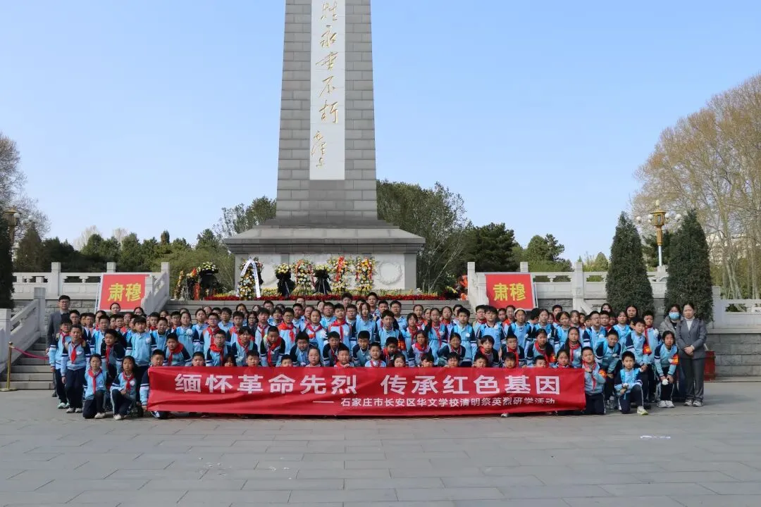 清明将至,哀思绵长。为缅怀革命先烈、传承红色基因,厚植学生爱国主义情怀,我校的校领导带队,组织四、五年级全体师生前往华北军区烈士陵园,开展“清明祭英烈”主题研学实践活动,以庄严仪式致敬英烈,以赤诚之心铭记历史。