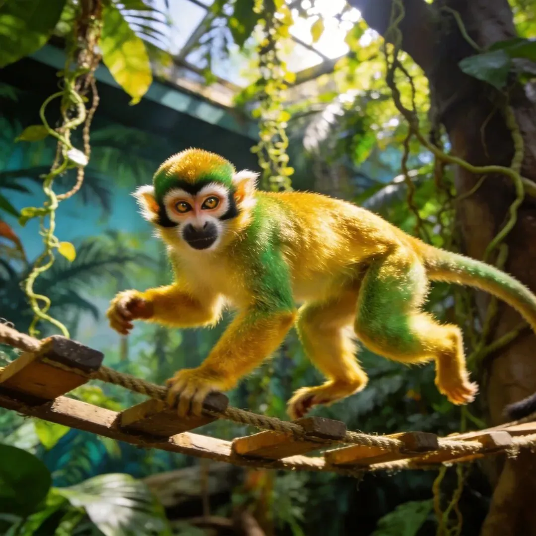 绿猴有多特别?全身金黄带绿色调的皮毛,眼睛炯炯有神,脸谱像京剧美猴王。