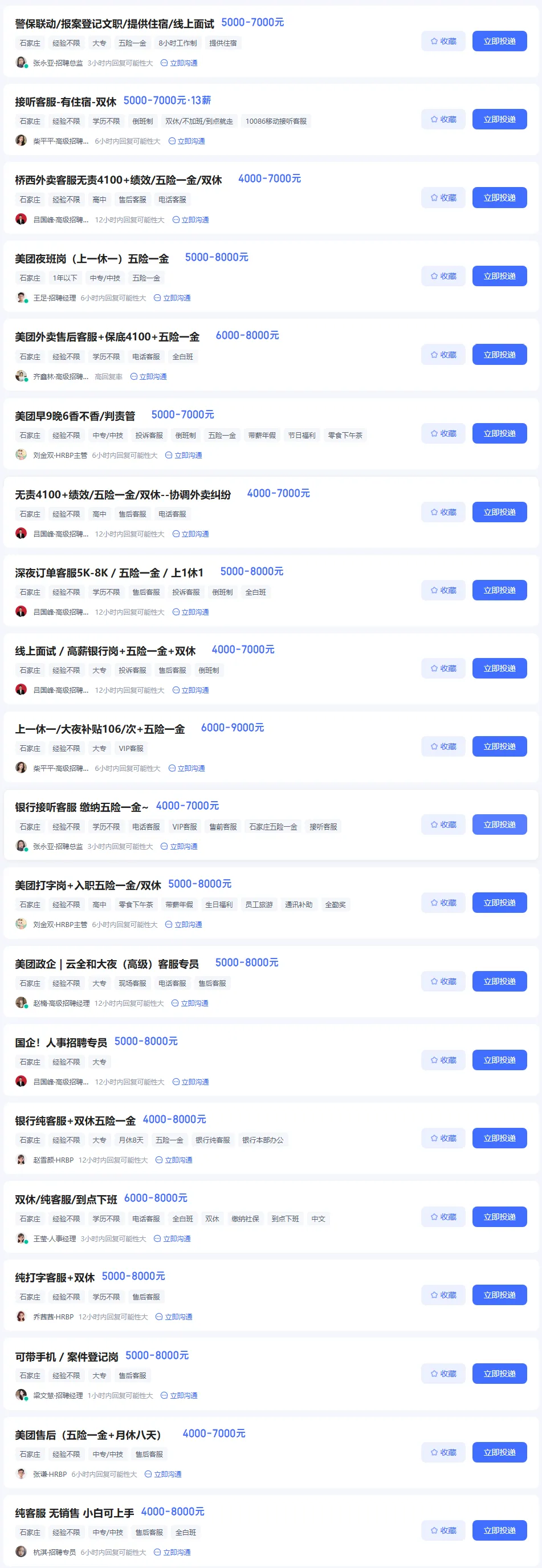 声明:“石家庄市招聘信息网”公众号刊载此文,旨在公益性分享传递更多信息并无盈利性质使用,招聘信息皆来源于网络招聘平台。若信息来源标注错误或侵犯了您的合法权益,请及时联系我们,我们将立即删除或改正。