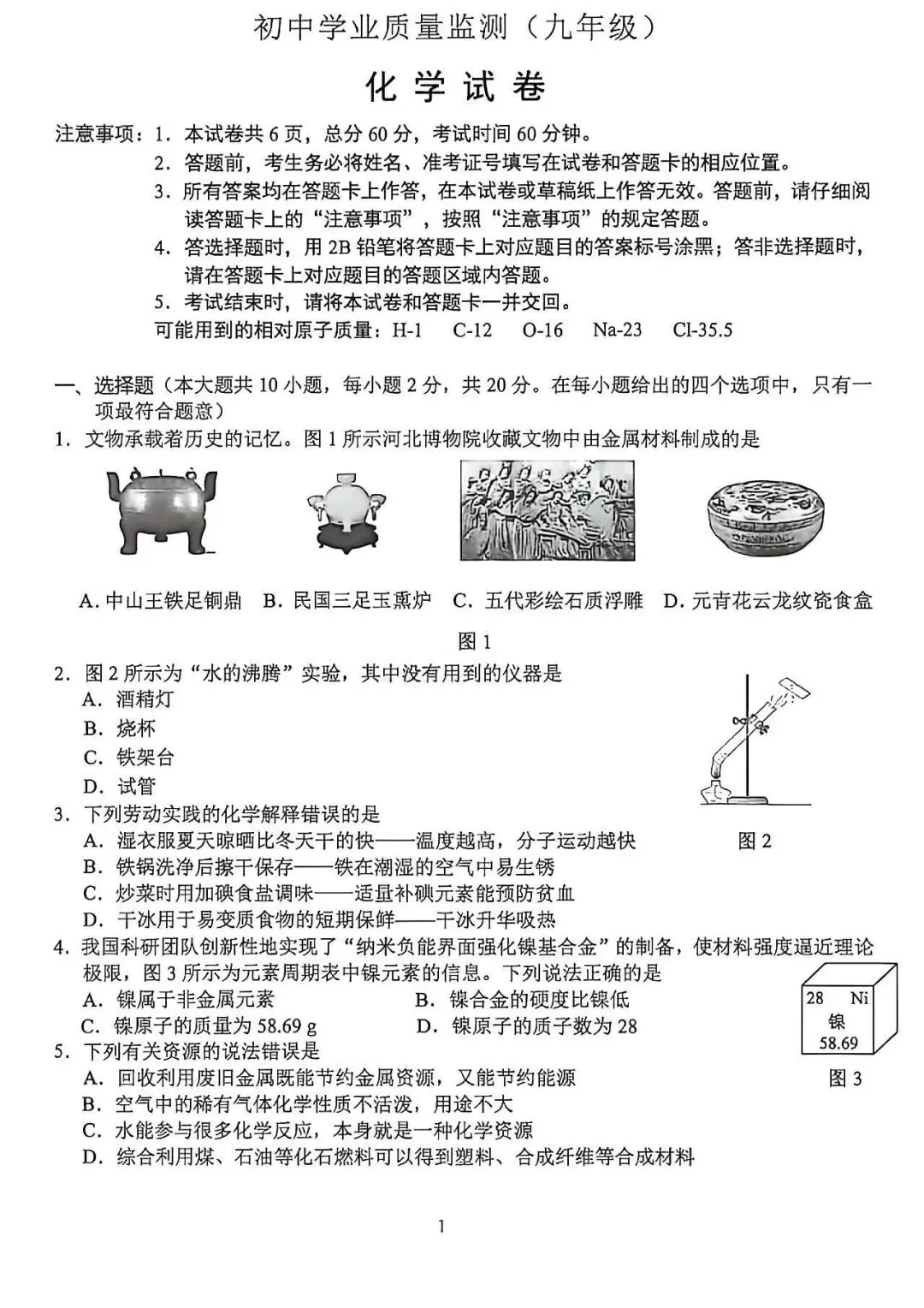 2026年河北初中学业水平模拟数学试卷(摸底一)