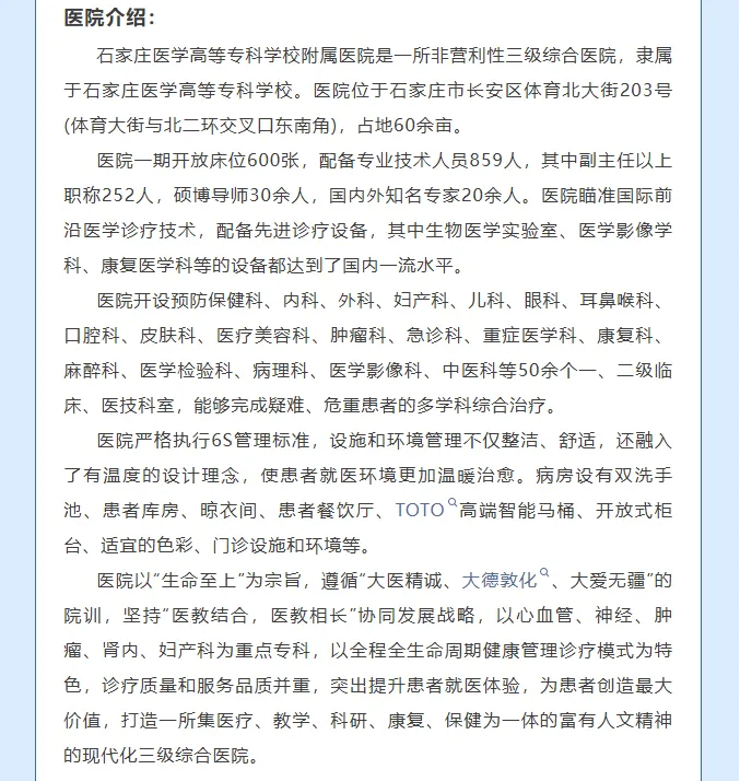 >石家庄医学高等专科学校附属医院招聘临床医师