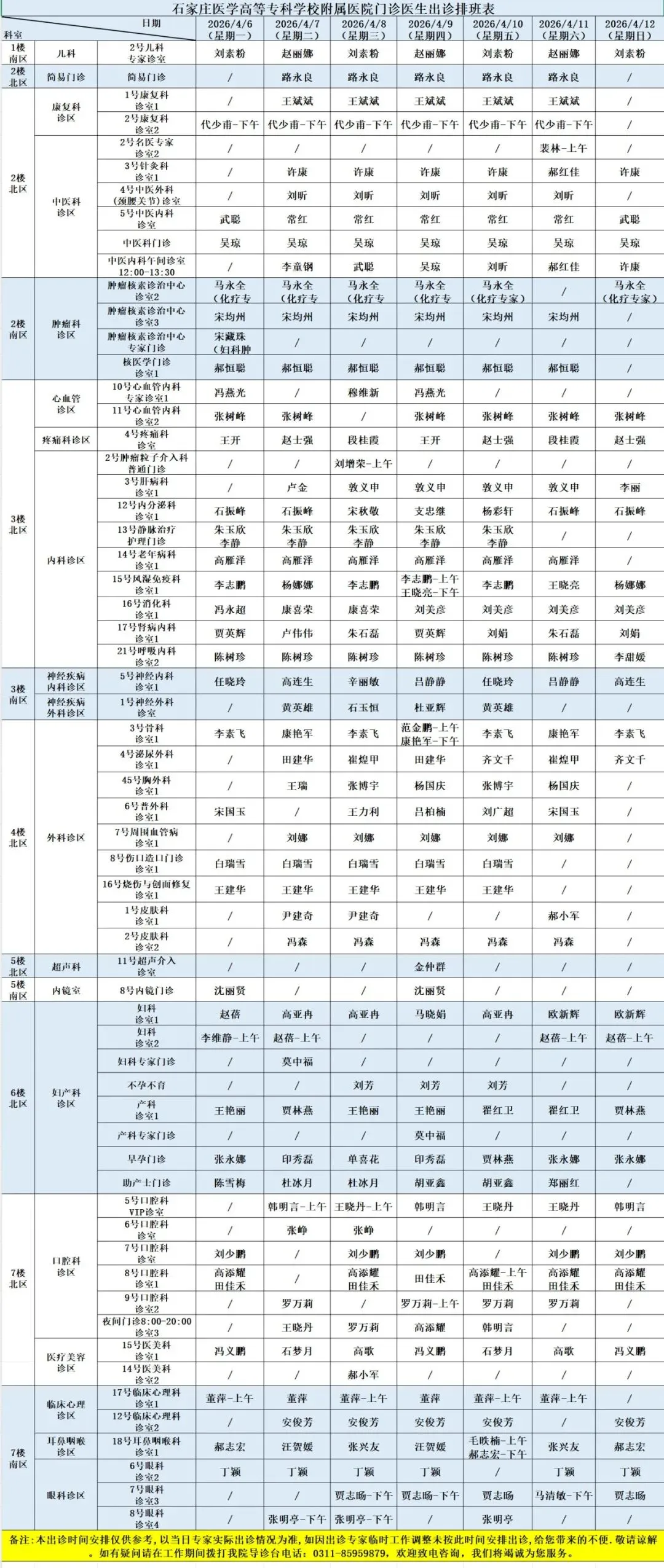 医院开设预防保健科、内科、外科、妇产科、儿科、眼科、耳鼻喉科、口腔科、皮肤科、医疗美容科、肿瘤科、急诊科、重症医学科、康复科、麻醉科、医学检验科、病理科、医学影像科、中医科等50余个一、二级临床、医技科室,能够完成疑难、危重患者的多学科综合治疗。