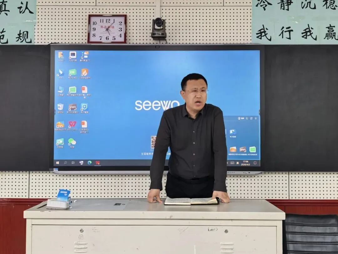会上,刘广宇主任首先通过工作照片,展现了高三全体教师辛勤付出、坚守岗位的奋斗风采。随后,他对本次校内质检数据进行全面、细致分析,客观展示质检工作中的亮点与问题,并结合高考总体目标,明确质检二阶段的备考目标。同时,刘主任向全体教师提出针对性建议:要补齐短板,找准增分点,重视错题整理与复盘总结;坚持精选优质习题,提升复习效率与质量;强化答题规范指导,注重细节提分;加强教学组、备课组合作,形成备考合力。