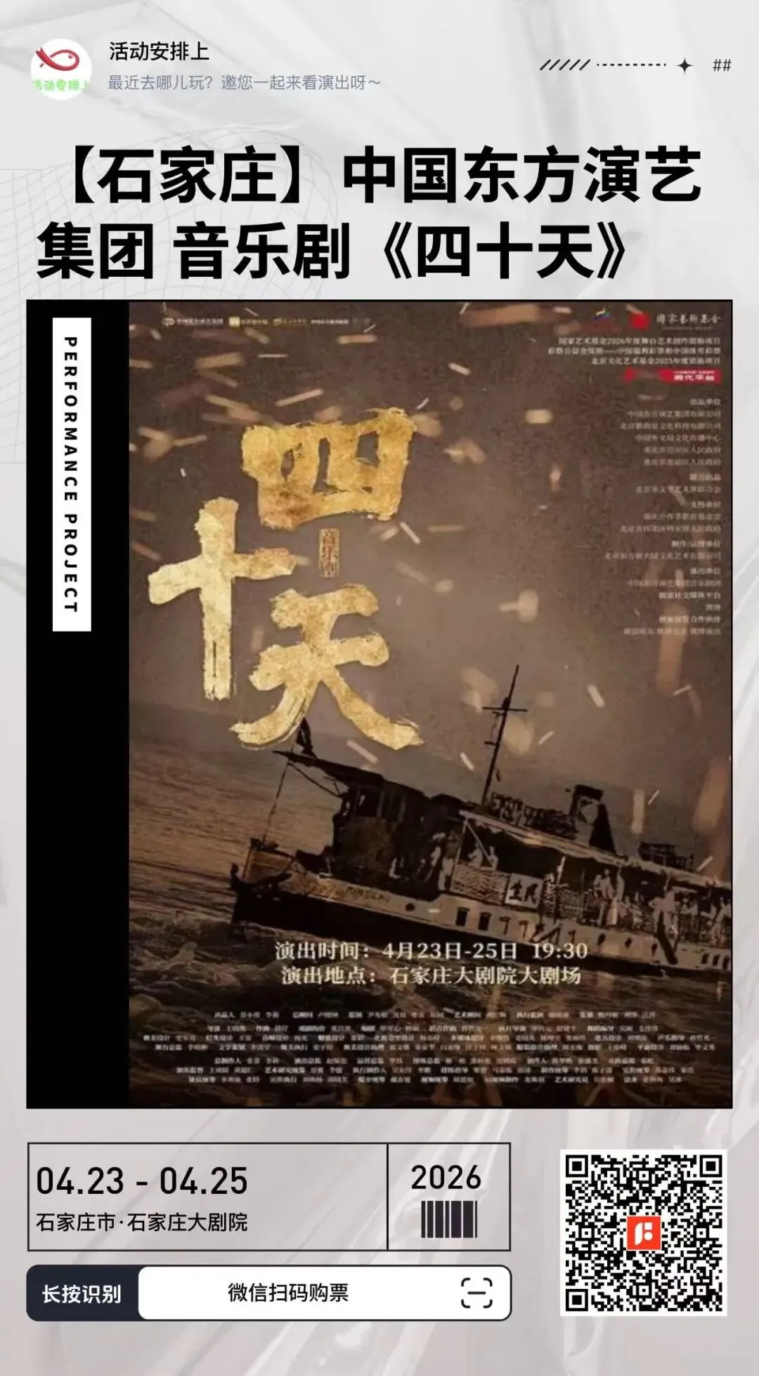 >【石家庄2026.04.23-04.25】中国东方演艺集团 音乐剧《四十天》