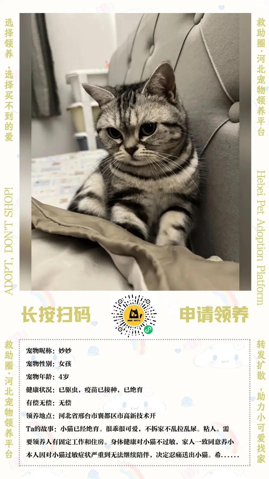 2026年04月04日邢台、石家庄、邯郸宠物领养(4只猫猫)