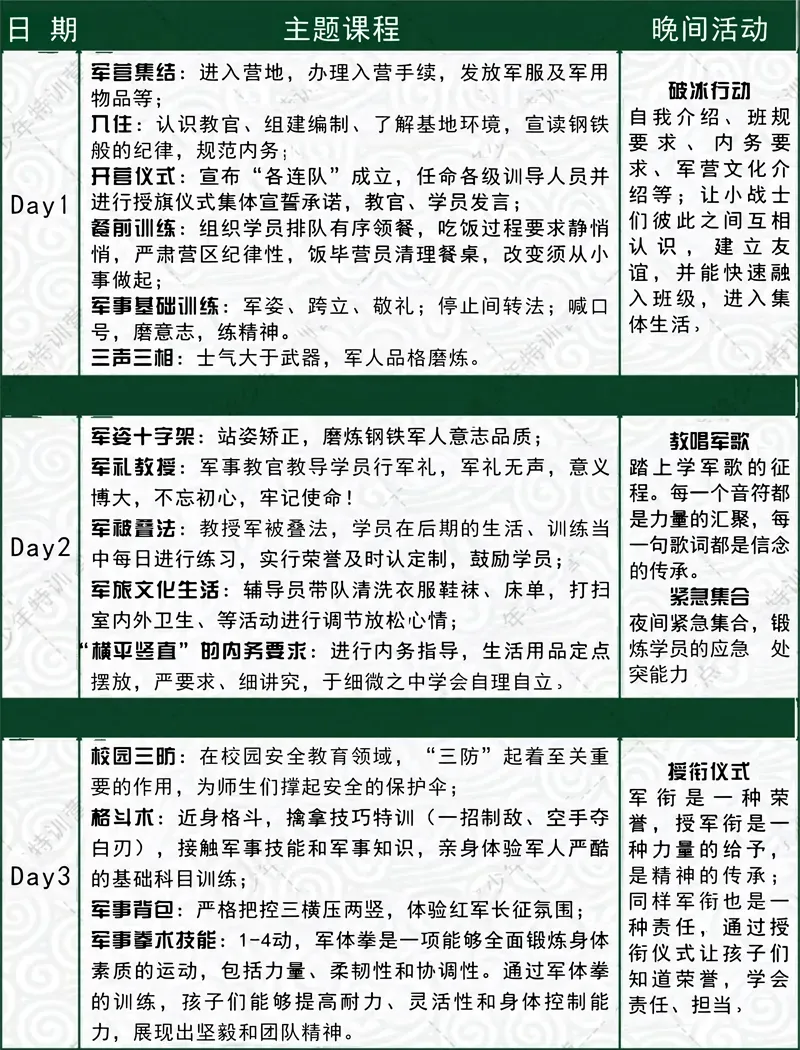 费用全包,孩子的衣食住行、保险军装等等,后期没有任何额外费用