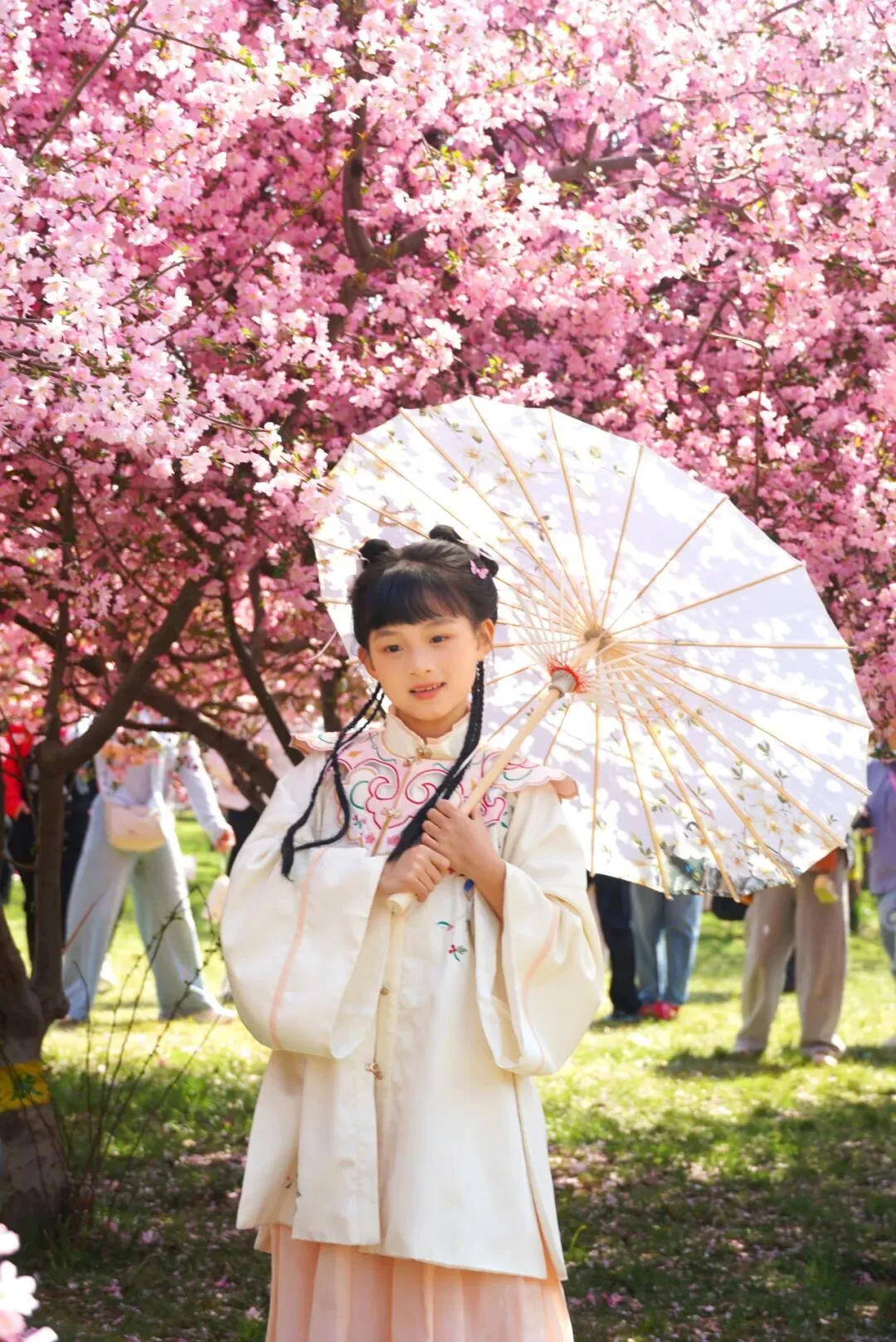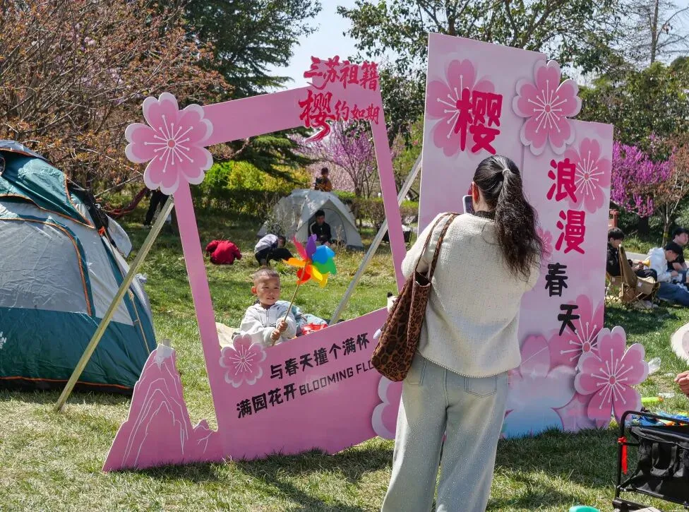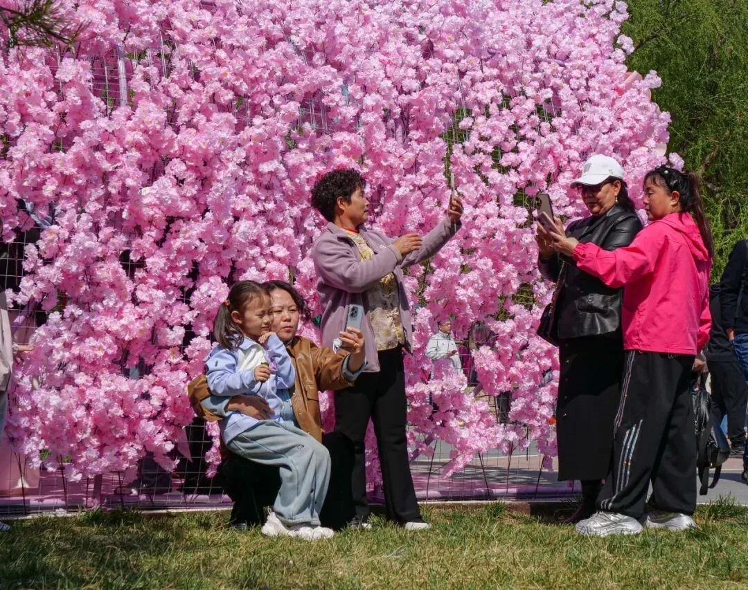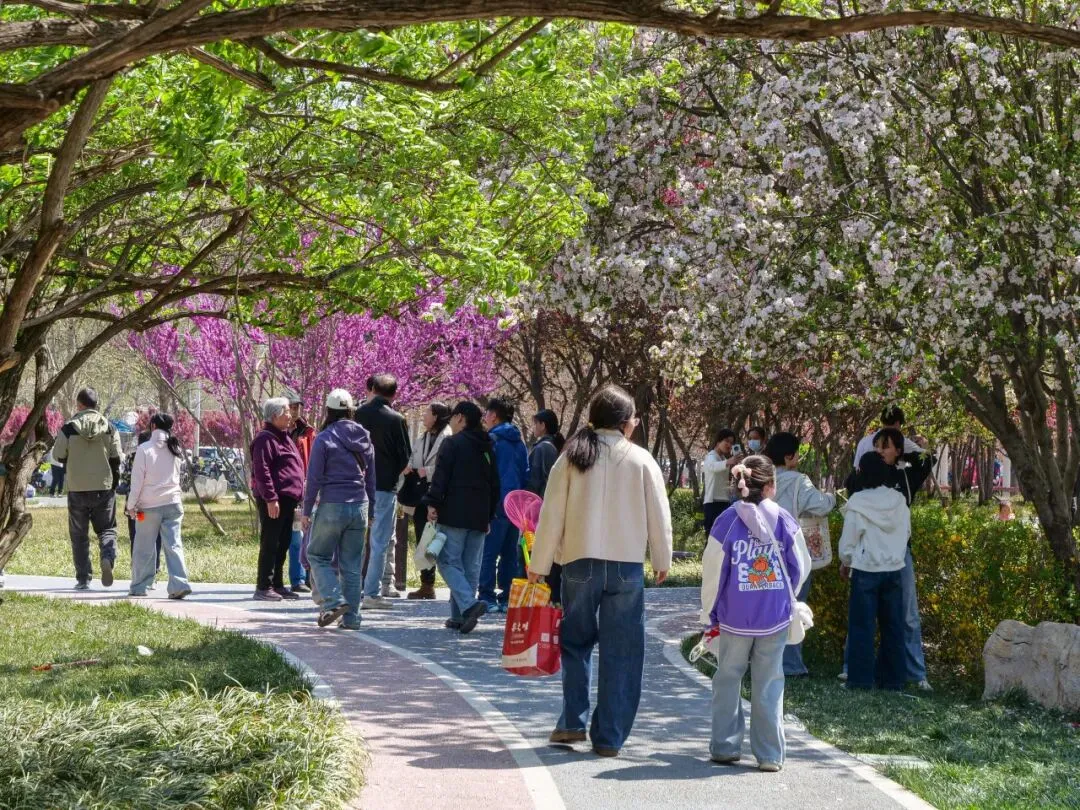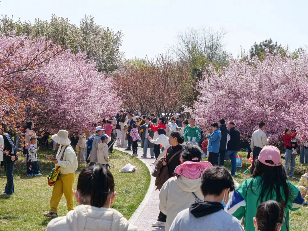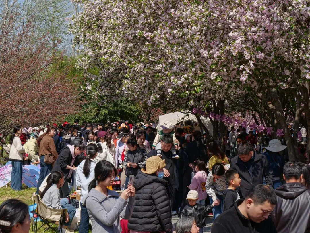 繁花缀满枝头,正是拍照好时节!游客们或站在树下浅笑回眸,或与家人好友并肩合影,花海作背景,每一张照片都自带温柔滤镜,将春日的美好定格成册。
