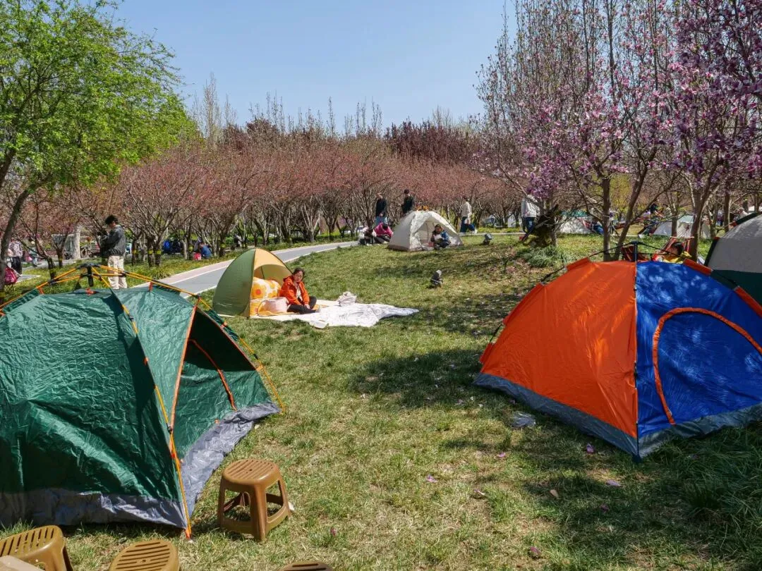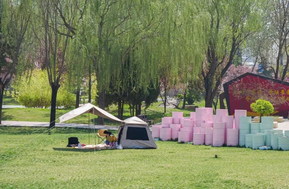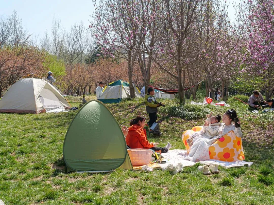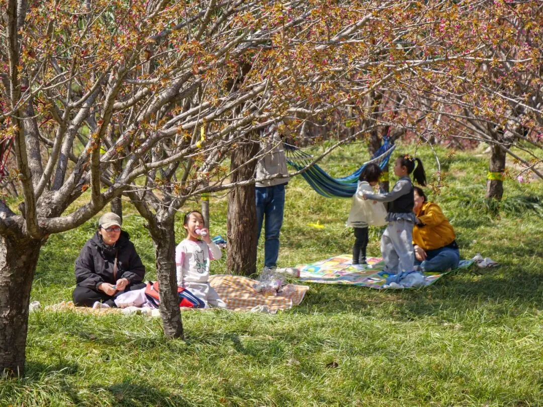微风拂过樱枝,花瓣随风飘落,草坪上更是一派惬意景象。不少游客带着野餐垫、帐篷,围坐在一起,伴着漫天樱雨,分享美食、畅谈心事,孩子们在草坪上追逐嬉戏,阳光、樱花、欢笑交织在一起,解锁春日休闲新方式,感受栾城春日的松弛与浪漫。