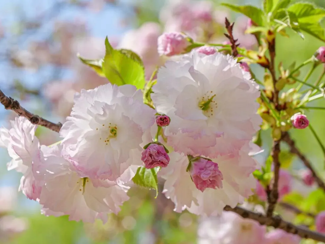 褪去人潮的喧嚣,凑近细看,每一朵樱花都藏着独有的温柔。关山、郁金等13个品种的樱花次第绽放,有的含苞待放,娇羞欲滴;有的肆意绽放,烂漫多姿,粉的似霞、白的如雪,花瓣上的露珠晶莹剔透,微风拂过,落英缤纷,每一帧都是治愈人心的春日美景,尽显栾城春日的灵动与诗意。