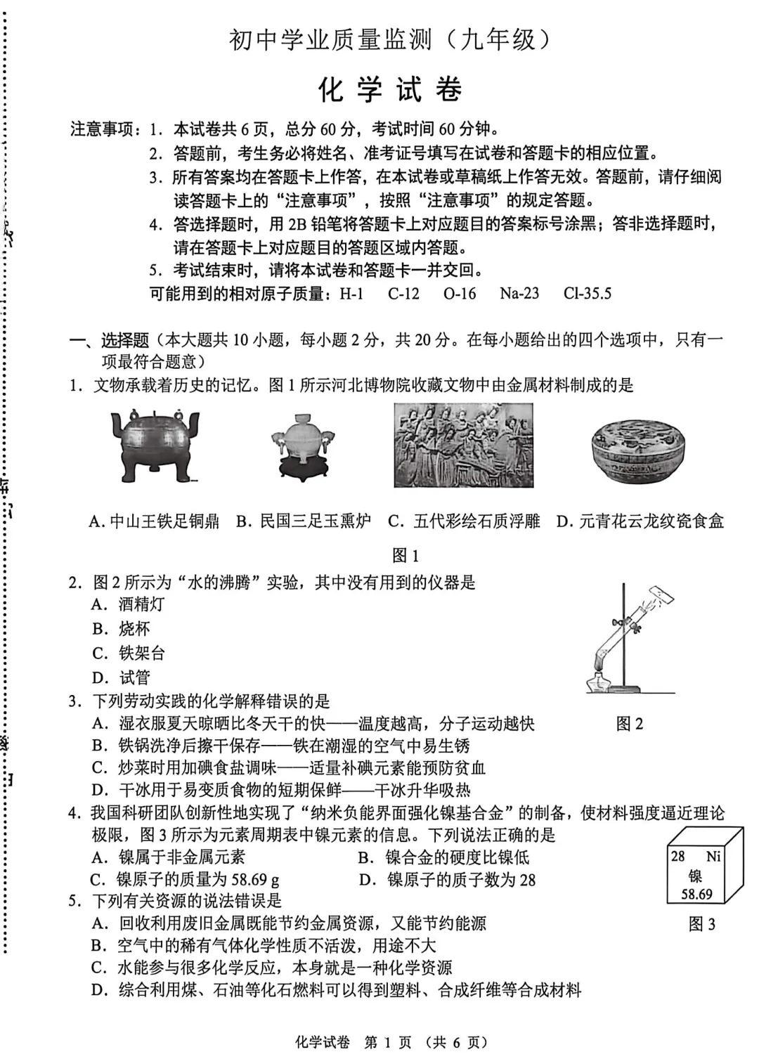 2026年04月01日 石家庄新华区 初三化学试卷