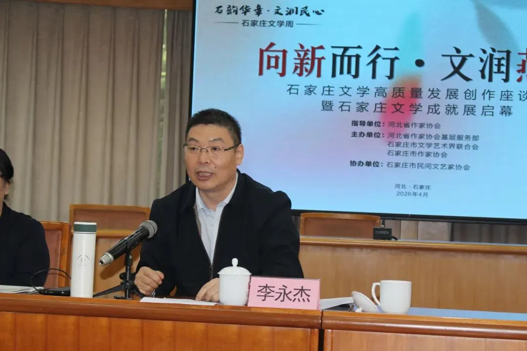 李永杰在讲话中指出,石家庄文学底蕴深厚,近年来文学事业成果显著、人才辈出,广大文学工作者要坚守创作初心,深耕文化沃土,紧扣时代脉搏,挖掘本土资源,凝聚创作合力,壮大文学队伍,创作出更多接地气、有温度、有深度的精品佳作;市文联将持续搭建交流平台、做好服务保障,全力助推石家庄文学事业再上新台阶。