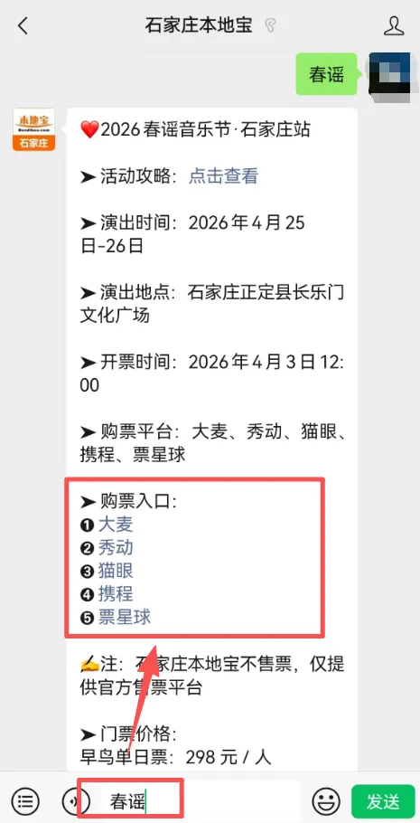 ✅也可关注【石家庄本地宝】公众号,私信回复【春谣】,即可获取上述购票入口(注:石家庄本地宝不售票,仅提供官方购票入口,下同)