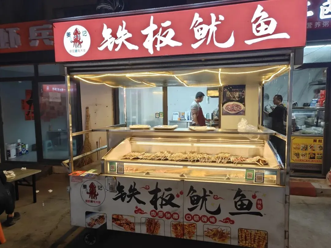 这家铁板鱿鱼是我每次来电大街夜市都要吃的,以前是在白吉馍旁边,前段时间说是因为大气的要求,只能租个门脸,又增加了成本。