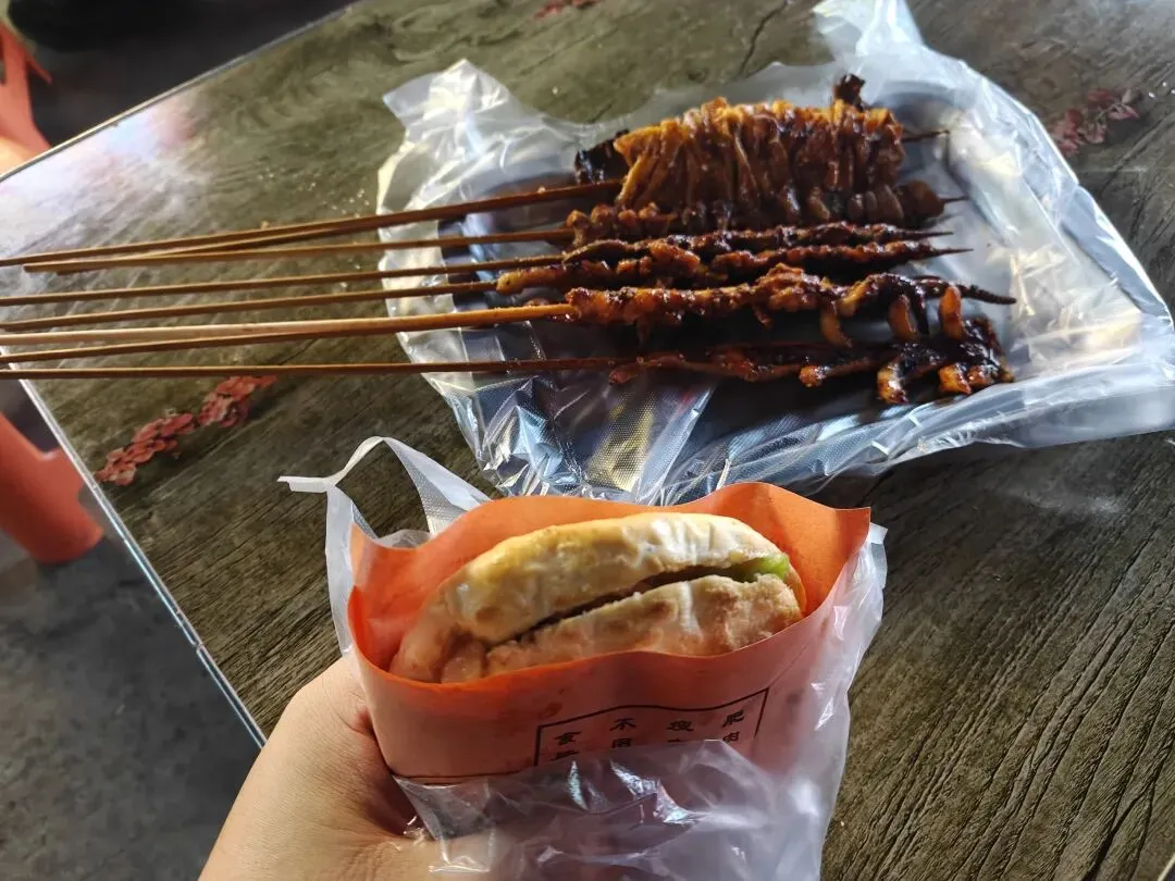 20元的铁板串配一个6元的肉夹馍,可怜的