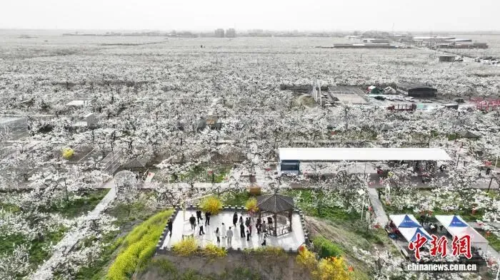 赵县25万亩梨花正值盛期,白茫茫如雪海,自驾1小时即达,还能品当地小吃 。