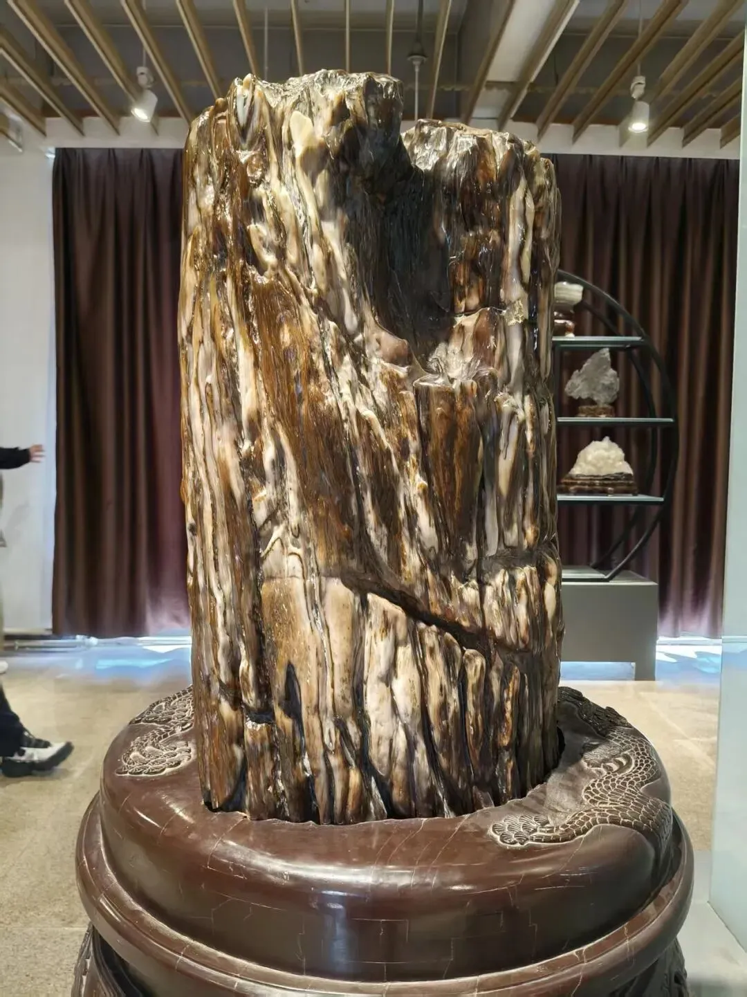 馆里陈列着一块块巨大的“木头”——不对,是石头。表面光滑如玉,纹理清晰得像年轮,但摸上去冰凉坚硬。这就是树化玉。