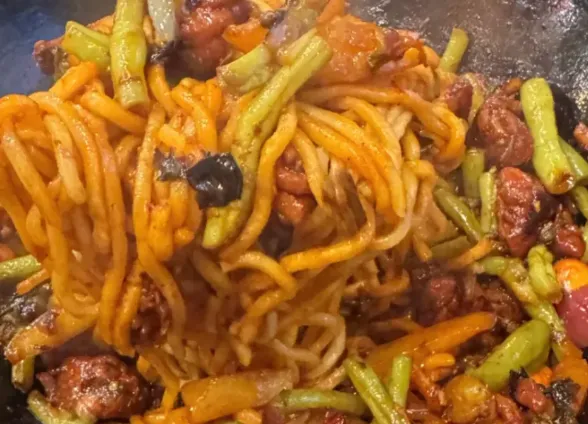 庄里人从小吃到大的焖面老店,特别适合三五好友小聚,性价比拉满。这里的焖面都是现场制作,看得见的新鲜。最受欢迎的排骨红烧肉焖面,排骨软烂脱骨,红烧肉肥而不腻,面条紧实耐嚼,裹满浓郁酱汁,吃起来超舒坦;还有牛肉焖面、鸡肉焖面可选,搭配玉米贴饼子,地道家常味十足。