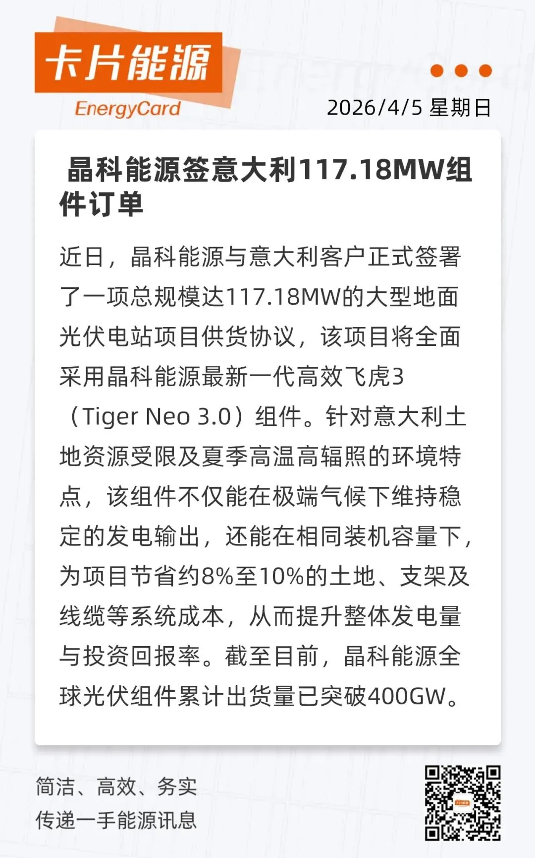 >卡片晨讯:河北石家庄新能源发电首次突破600万千瓦 近七成电力客户用上“绿电”(附音频解读)