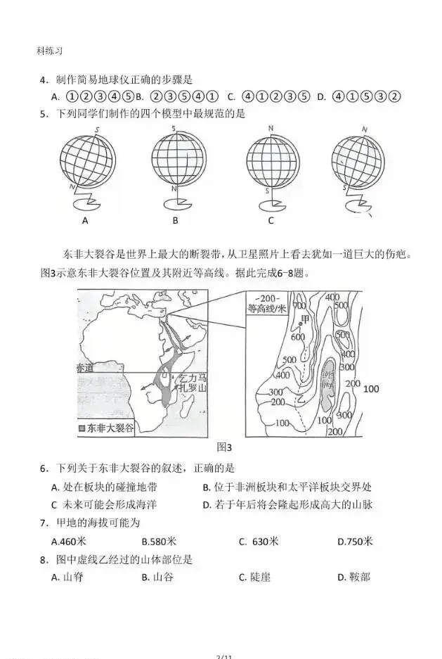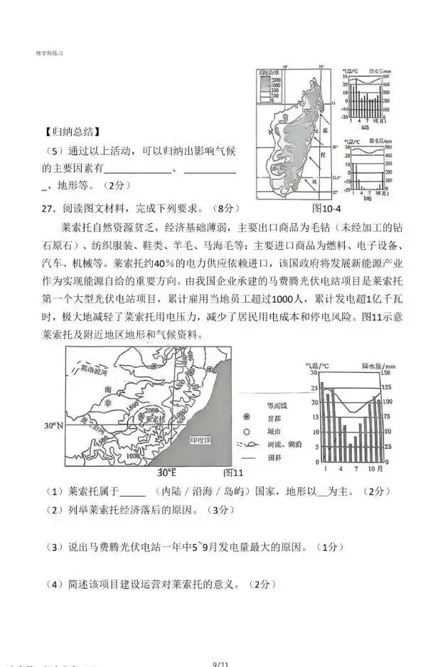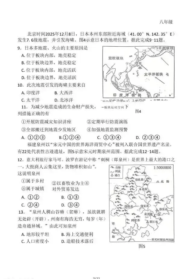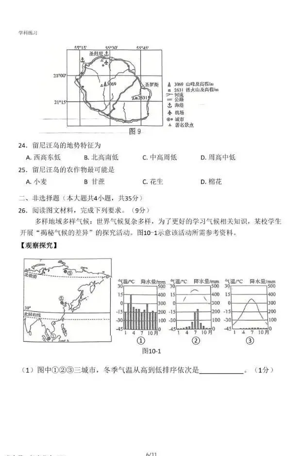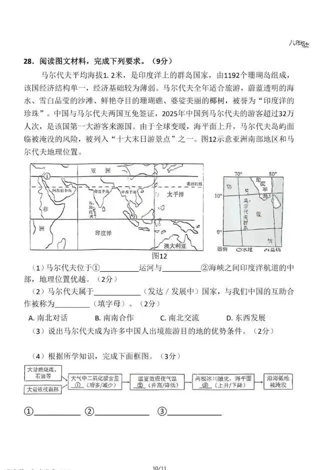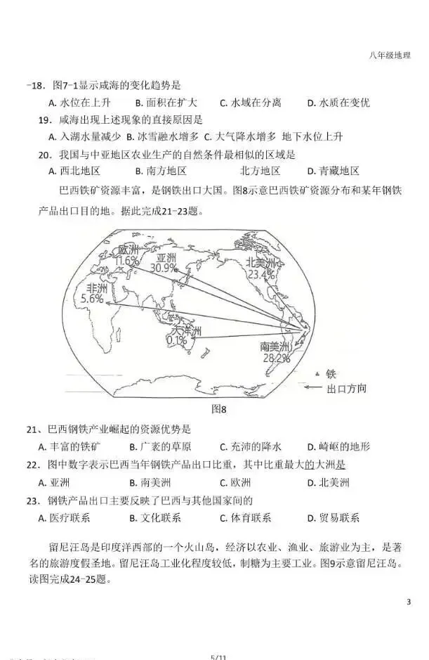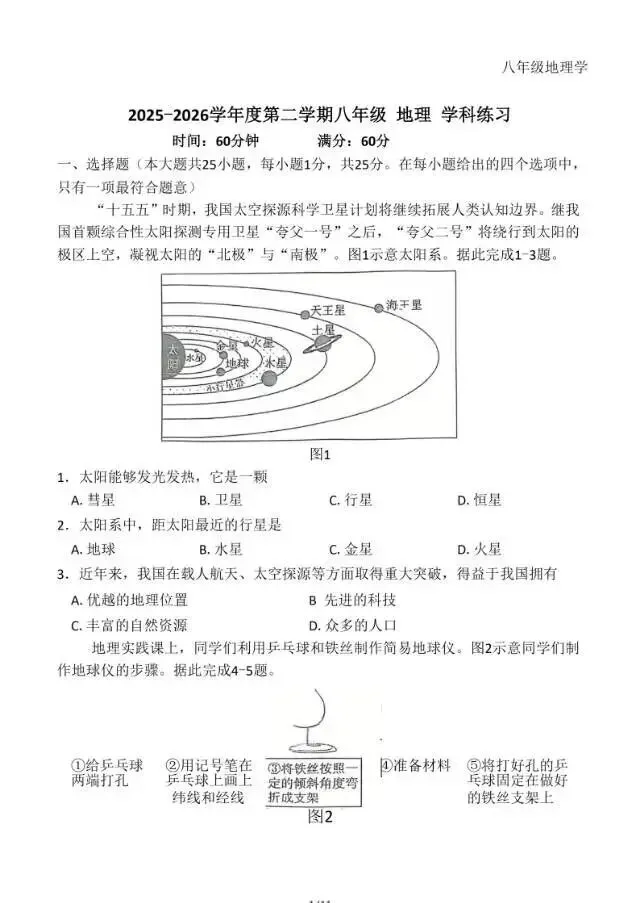 2026年3月河北初中学业水平摸底考地理试卷与答案