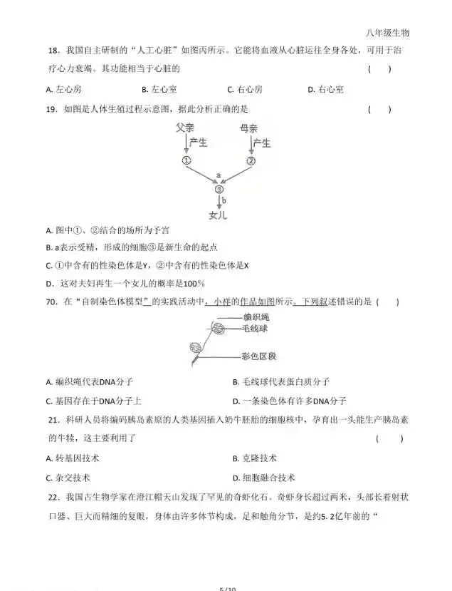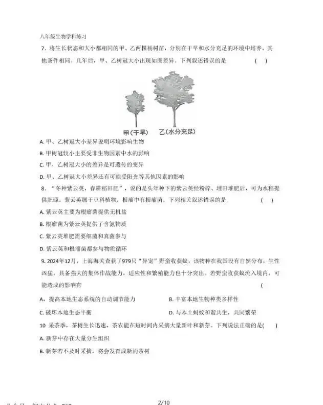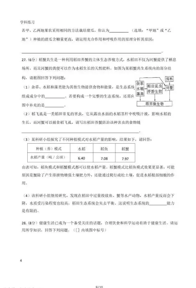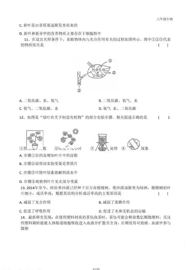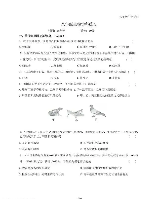 2026年3月河北初中学业水平摸底考生物试卷与答案