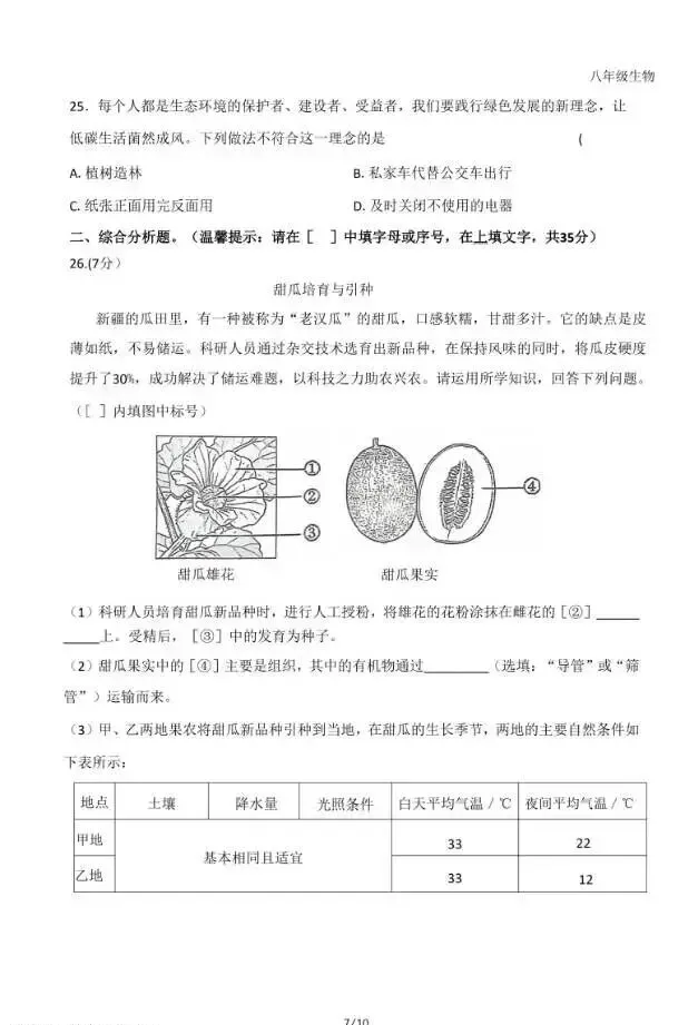 2026.3石家庄市桥西区中考一模地理生物试卷及答案
