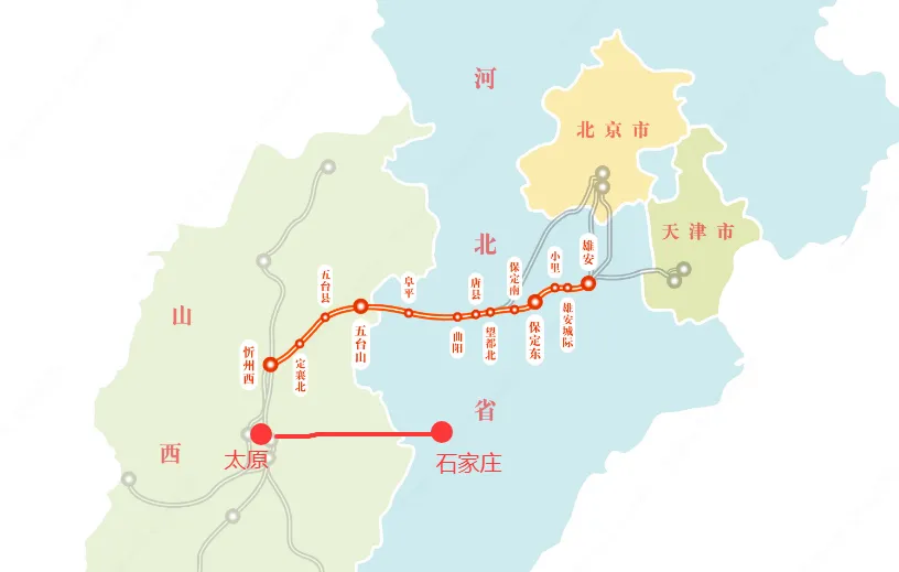 石家庄东部的高铁建设,加速进行,石横沧港,石雄城际,石邢邯城际也进入十五五计划中。但是石家庄西边的高铁却是静悄悄。以前有石太三线的规划,但是随着雄忻高铁的建设,这条线路未来的规划压力很大。那么石家庄西边未来的新线路还有没有呢。咱们分析下。石家庄西边仅有一条高铁线路,就是石太高铁,但是最高时速仅有250公里,石太之间,急需一条350公里的高铁线路。随着雄安的确立,忻保高铁成为了雄忻高铁的一部分,立马开始建设,预计年底能够运行了。由此带来的一个问题,就是石太三线的希望越来越渺茫。之前石太高铁兼顾京昆线路的功能,雄忻高铁建成后,成为了京昆主线。石太线,只能作为京昆的辅助。那么石家庄往西,未来只有一条250公里的石太线吗。在2025年初,山西和内蒙古的集大原高铁建成通车,设计时速250公里。使得呼和浩特与太原间运行时间,将从原来5个多小时缩短至最快3小时多。而山西和内蒙古的另一条高铁线路也进入计划中,在两地的十五五中都有提到,就是呼朔高铁。这条高铁线路,将使呼和浩特到太原的时间,更是缩短至2个小时以内。可以说相对于集大原,优势更加明显。其实如果呼朔高铁能够建成,也给石家庄提供一条西部的高铁线路规划,就是朔石高铁。目前包头、呼和浩特等地,要想去东部沿海地区,只能北边绕北京,或者南边西安郑州,不管哪边,都是耗时费力。而通过呼朔石高铁,再转石济,或者京广,可以很方便的到东部沿海,以及中南部区域。时间上能够节省2至3个小时左右。石家庄至朔州隔着太行山,但是之间还真有一条铁路线连接,就是石家庄至平山的大宋铁路,平山至朔州的朔黄铁路。虽然只是一条货运铁路线,但是说明了石家庄和朔州之间修建客运铁路线,是有可行性的。可以以朔黄铁路和大宋铁路线为基础,在旁边架设高铁线路。站点可以设置,朔州,忻州北,五台,西柏坡,平山,石家庄。朔石高铁的建成,再结合呼朔高铁,这条线路一定成为西北到华北华东地区的一条高铁主干道。