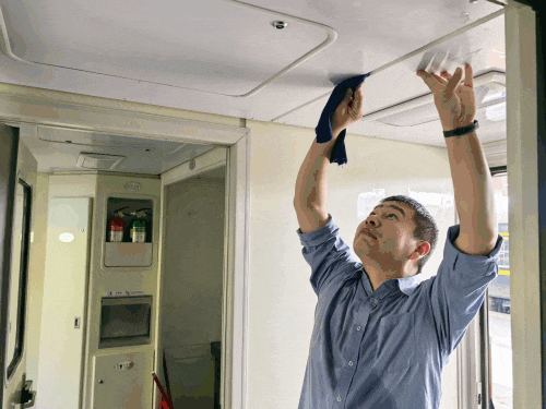 3月30日,秦邯车队秦3组利用排空车次及站停时间,全面整治车内环境卫生,细致清理通风窗、电茶炉、洁具柜及边条死角,全力打造整洁温馨的出行环境。(秦邯车队 刘翠平)