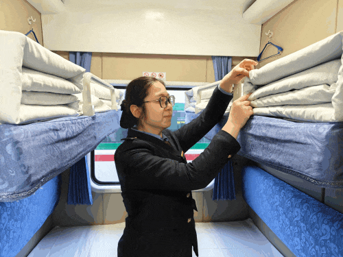 3月28日,石沪车队沪1组值乘K233次列车,班组对全列进行“拉网式”深度保洁,做到无死角、无杂物,同时规范卧具整理,确保铺位整洁统一,以标准化作业夯实服务根基,切实提升旅客出行满意度。(石沪车队 张晨)