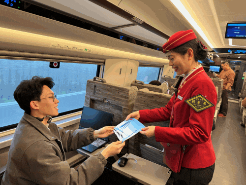 近日,高铁三队石青1组值乘G1211次列车期间,针对出差旅客多、途中办公需求大的特点,精心准备特色鼠标垫,贴心打造便捷舒适的移动办公环境。班组以细节化、精准化的暖心服务,满足旅客差异化需求,用小举措提升旅途质感,收获旅客一致好评。(高铁三队 刘洪阳)