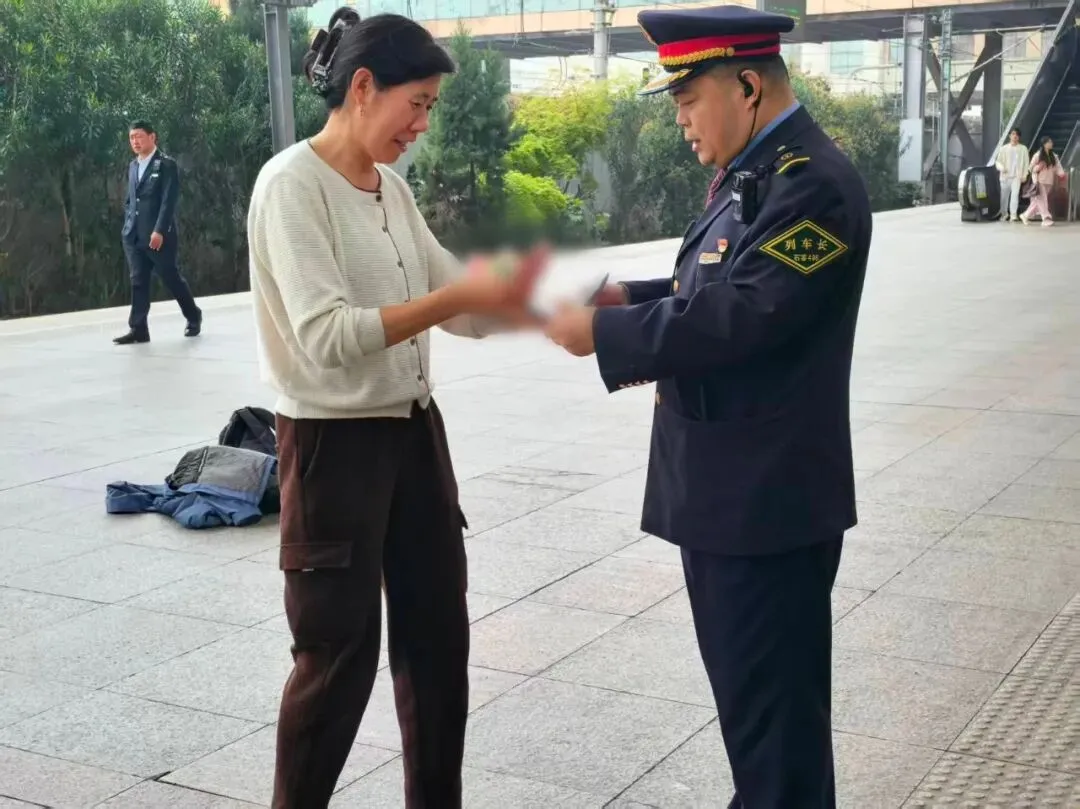 4月1日,石沪车队沪5组值乘K233次列车,班组捡到装有现金和证件的钱包后,多方查找失主信息,最终与旅客取得联系。旅客特意赶赴站台取回钱包,并当面向班组表示感谢。(石沪车队 赵坚凯)