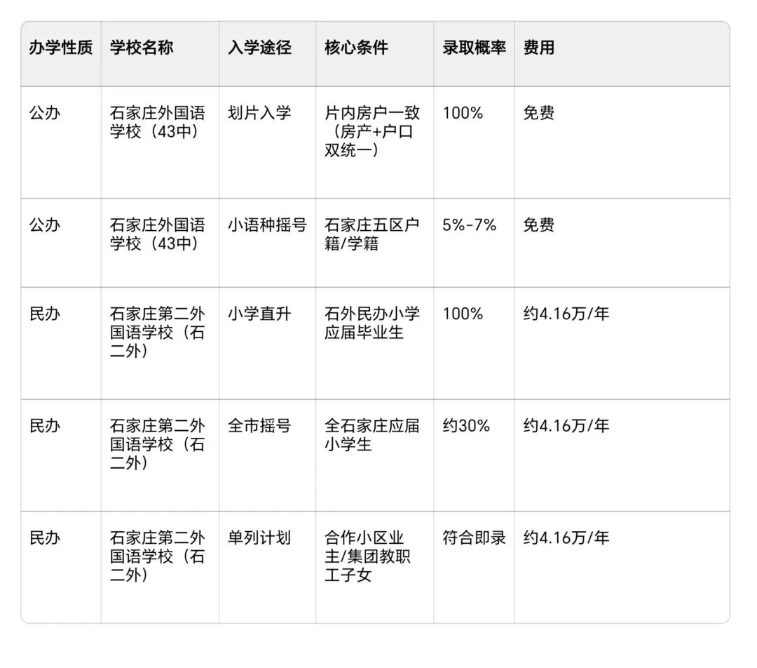 - 公办:石家庄外国语学校(大家常说的43中本部),免费义务教育