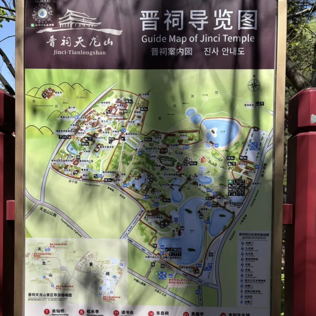 最近太原气温昼夜温差比较大,5到21度。所以我穿的是针织衫配薄款羽绒服。中午比较晒,可以戴个帽子遮阳。一早来太原,是为了吃个早餐。我俩吃不惯太原特色早餐头脑,所以选了丸子汤。在入住的酒店附近,随便找了一家。他家早饭品种比较多,我们要了两碗丸子汤,半斤烙饼,俩茶叶蛋,一共21块钱。丸子汤里可以加东西,我选的海带丸子汤,饭搭子选的豆皮丸子汤。烙饼尤其不错,酥香软烂。应该是用胡麻油烙的,饼的颜色金黄,在庄里很少吃到这么好吃的烙饼。丸子汤不是纯肉的,但丸子Q弹滑嫩,配上醋,也很好吃。吃完感叹,庄里也开这么一家就好了。早饭后步行回酒店办理入住。因为假期原因,酒店涨价,如家的房间277块钱一晚。含双早。一天的计划行程本来是晋祠+植物园,这俩挨着,可以一起玩。我们先打车去的晋祠,因为放假,景区附近路比较堵车,会步行一段距离。游客中心可休息,但检票口还得往里走。排队入园。这里并不检票,因为晋祠是由晋祠公园+晋祠博物馆组成,晋祠公园是免费的不要钱,参观博物馆才收费,成人票80块一张,学生半价。具体可以看导览图。博物馆只是晋祠景区很小的一部分,当然,精华也都在博物馆。进大门后可以沿着直线走。整个景区直线走的话,一小时就可以走完,但细细游览+拍照的话,整体大概需要3个小时。这个小建筑,应该在西游记里出现过。以下都是检票后博物馆的部分了。晋祠有三大名匾:水镜台、对越、难老。下面这个是“对越”,出自诗经“秉文之德,对越在天。”当然,整个晋祠最核心的,是这个圣母殿。关于“圣母”是谁,我查了查,说法不一,有说是姜子牙之女邑姜,有说是北宋的刘娥,没有一致的说法。圣母殿比较精妙的是盘龙柱,八根木雕盘龙,颇具气势。圣母殿之前有个献殿(献殿即祭祀供奉的地方),献殿附近的鱼沼飞殿,是网红打卡点。我们到的时候,打卡点排起了大长队,本着来都来了的态度,我们也排了挺久。出了博物馆片区,我们有些累,坐了观光车回景区大门口,一个人10块。之后,因为已经下午2点多,所以我俩在景区外的商业街,吃了刀削面。西红柿鸡蛋刀削面10块,过油肉刀削面15块,俩人25。迫不得已在景区吃的,味道一言难尽。本来打算吃完直接去植物园,但因为吃得也不好还比较累,直接打车回酒店休息了。休息到下午5点,我们退了去植物园的票,改行程为汾河散步,后面我感觉这个决定也不错。当然,散步之前还是先吃饭。去的柳巷铜锣湾的晋阳家宴,平台双人餐118块。四个菜两碗米饭,性价比很高,尤其这个铜锅样子很唬人,但实际味道同样都一言难尽。我俩吃完又去外面整了根烤肠。吃完打车去了汾河景区。这个免费,不过到了之后才得知,部分河段的汾河水都被抽干了。但汾河旁边修建了步道和自行车道。共享单车也很多,我俩一人扫了一辆,沿着汾河骑行。这一路骑行的人很多,也体会到了城市拥河发展的好处。大概骑了2公里,骑到迎泽大桥,旁边草坪有人在玩夜光风筝。有台阶,可以回到主路,打车回酒店。上来之后发现,这好像也是个网红打卡点,好多青春靓丽的美女在这里打卡合影。这一天走了2万步,运动量完全够了。第二天上午10点返回石家庄,所以第二天不安排行程,主打休闲了。当然,也有一些令人惊喜的收获,下一篇再写了。